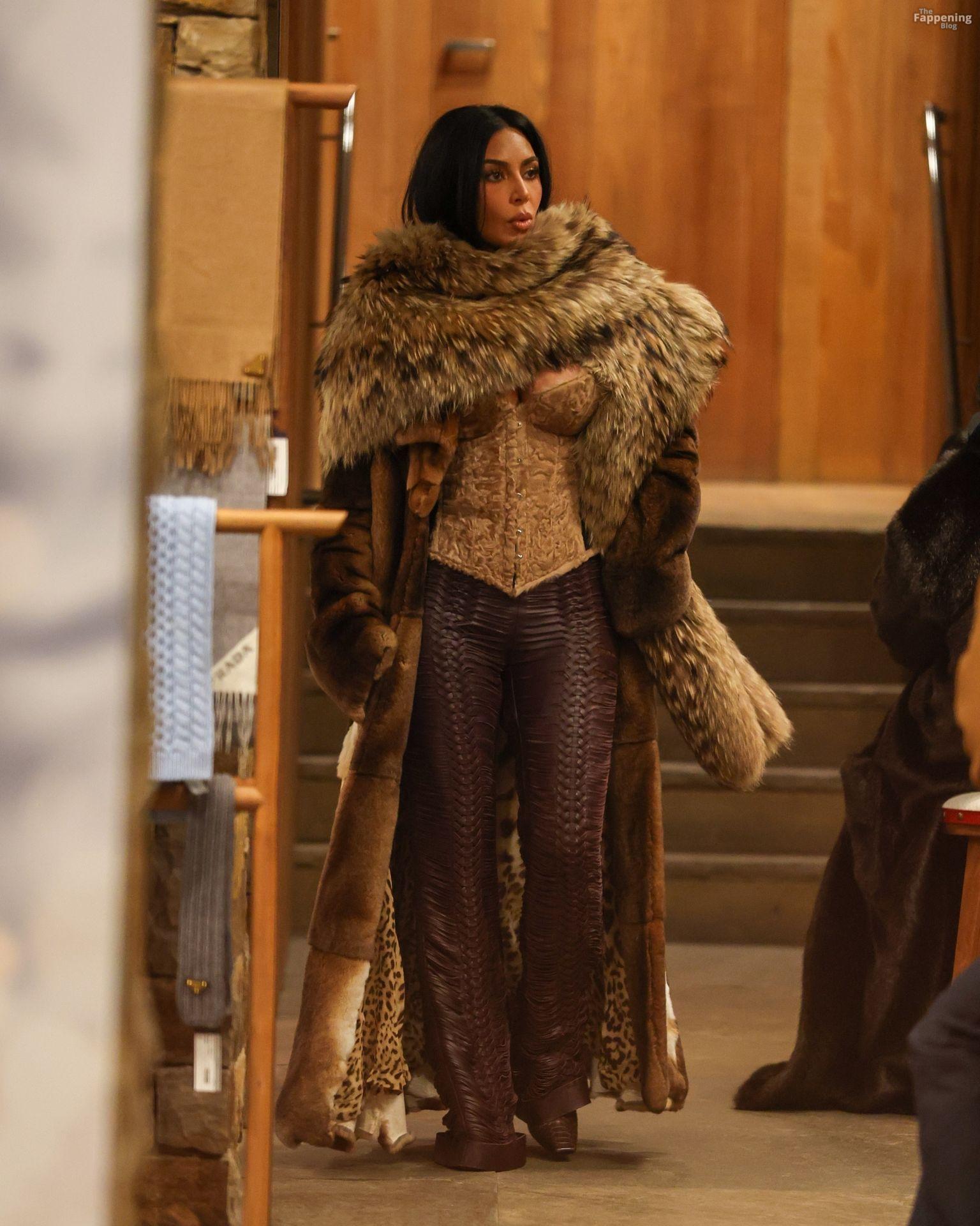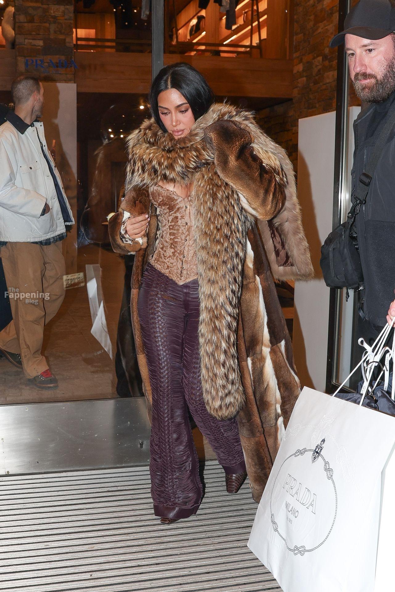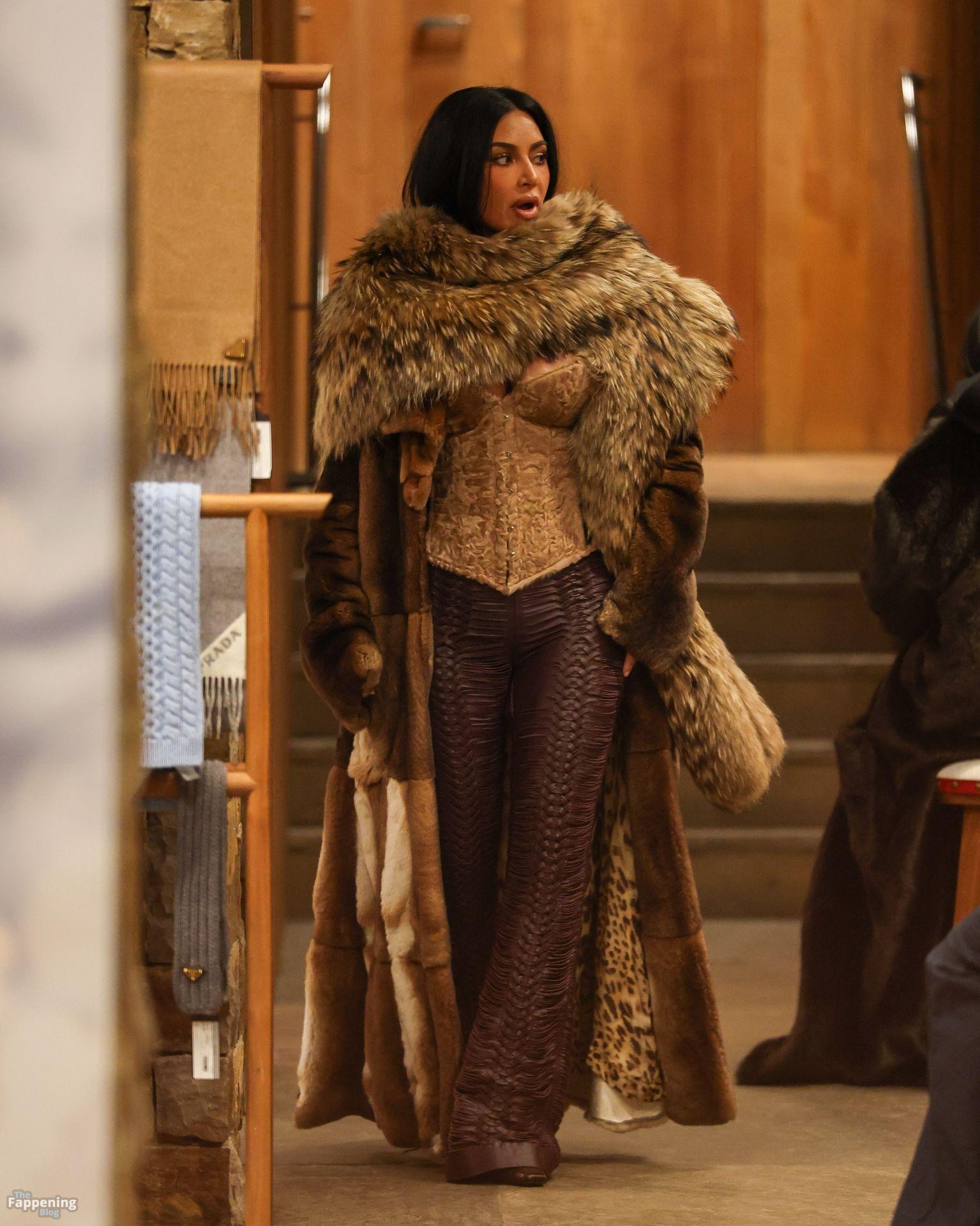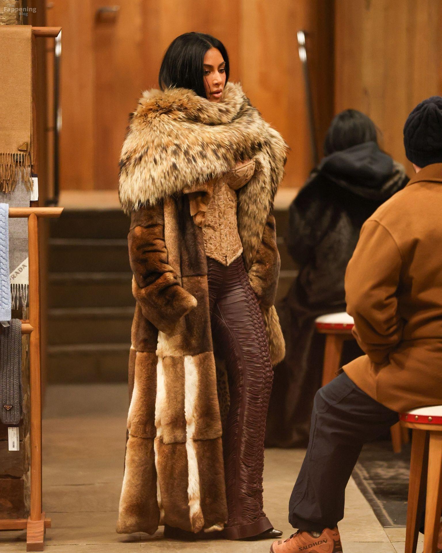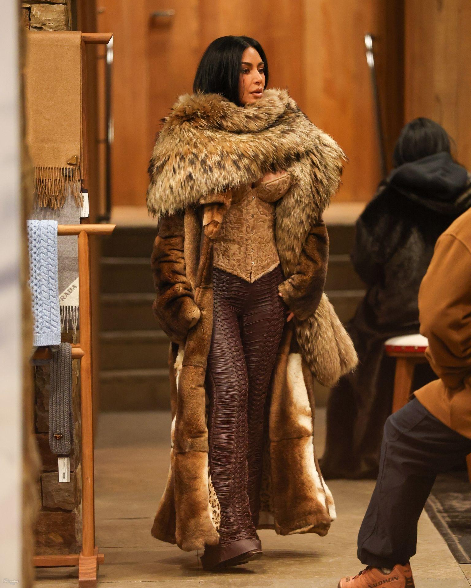 Kim Kardashian looks stylish bundled up in fur as she was spotted exitin’ the Prada Store in Aspen after shopping.
