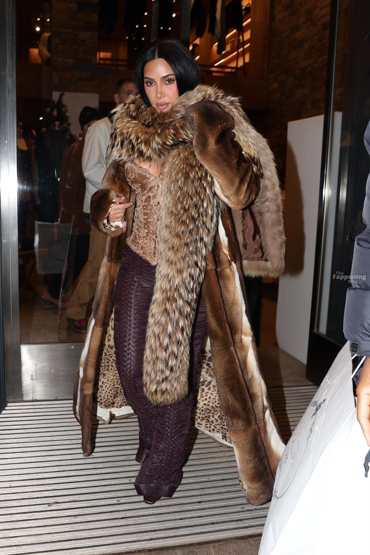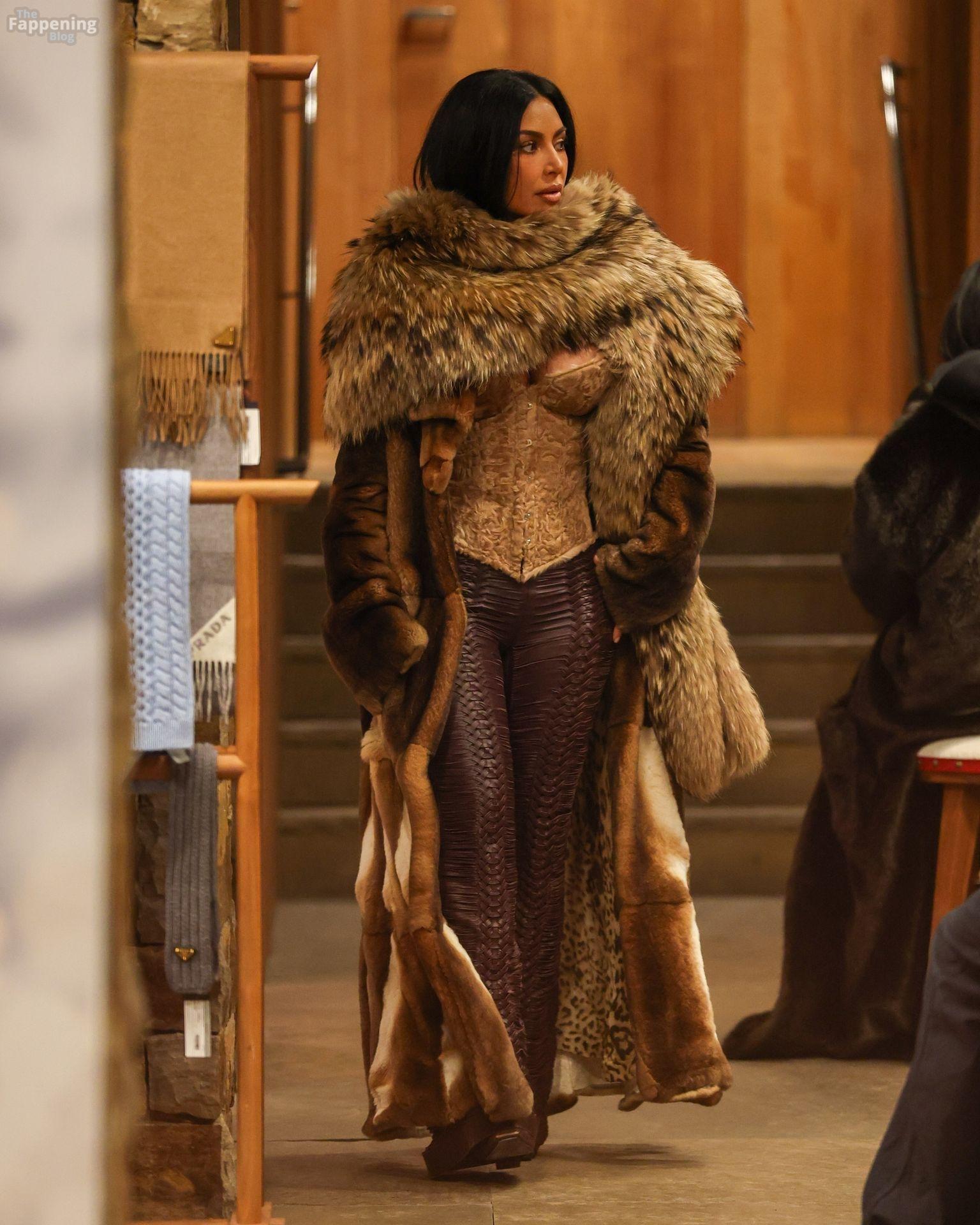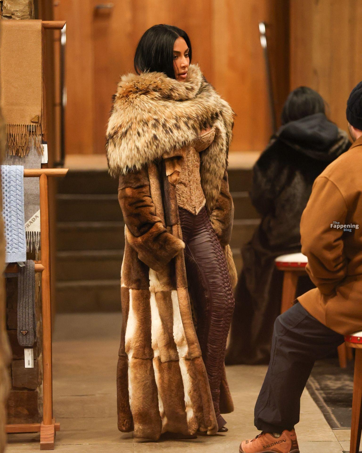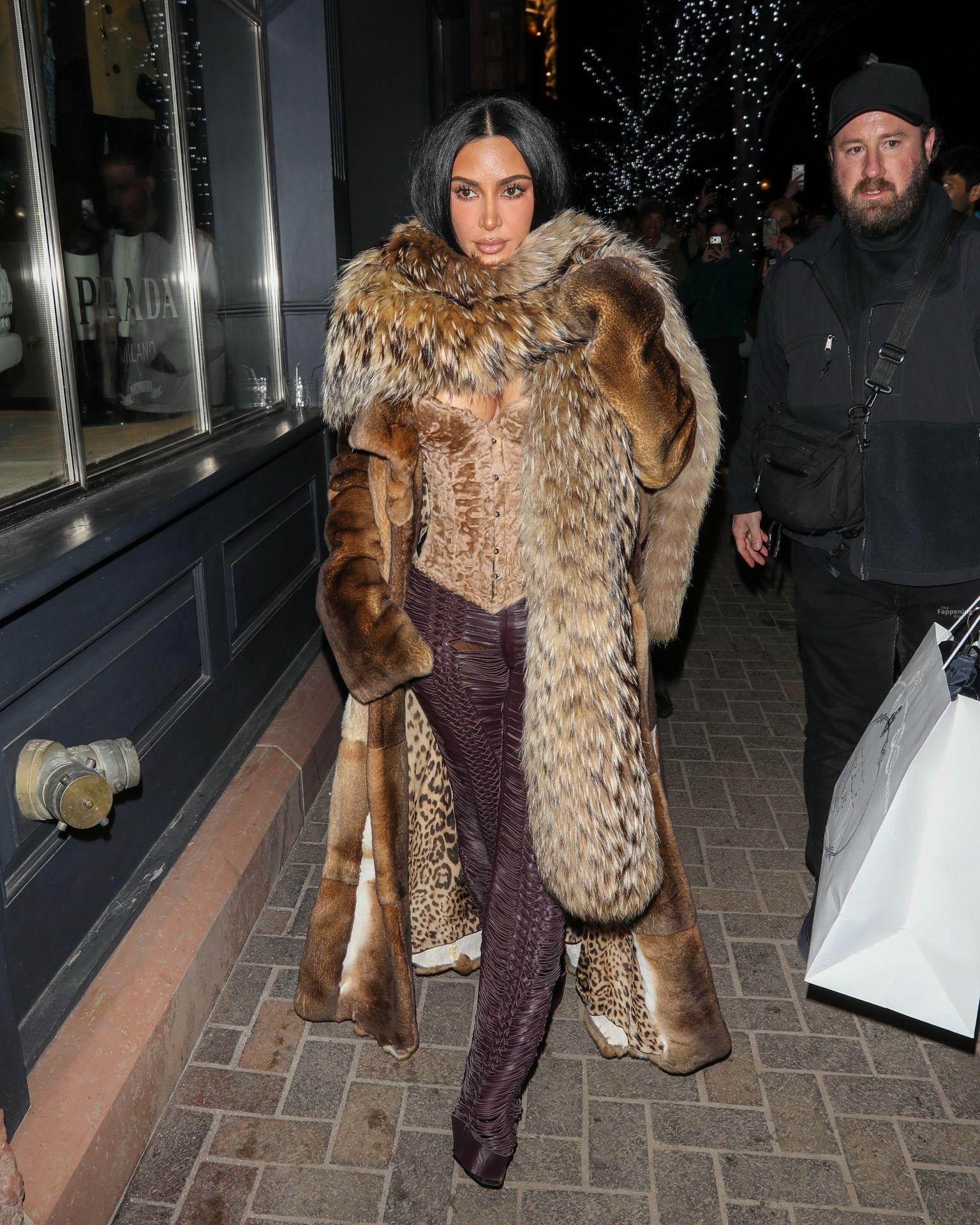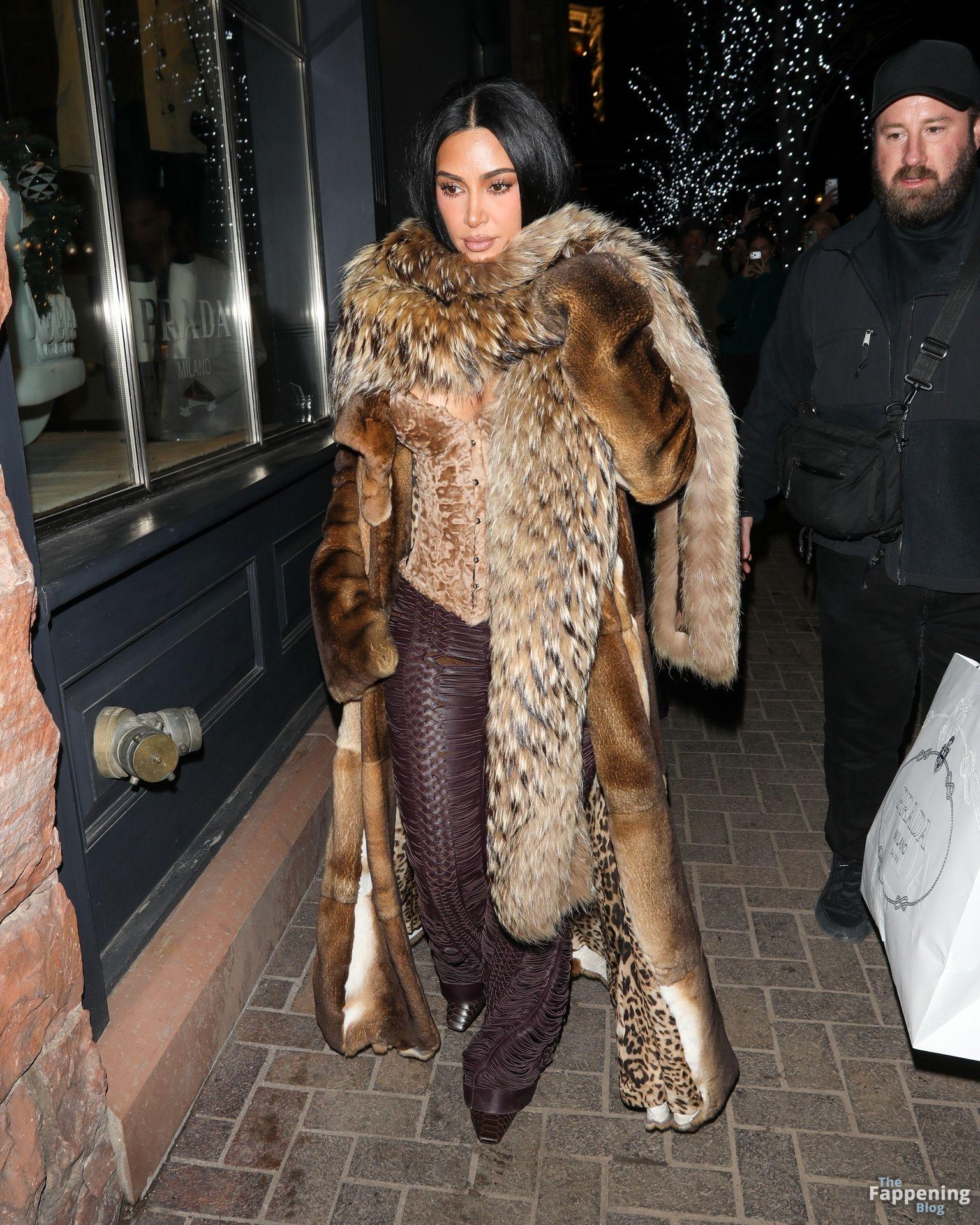 Kim Kardashian looks stylish bundled up in fur as she was spotted exitin’ the Prada Store in Aspen after shopping.