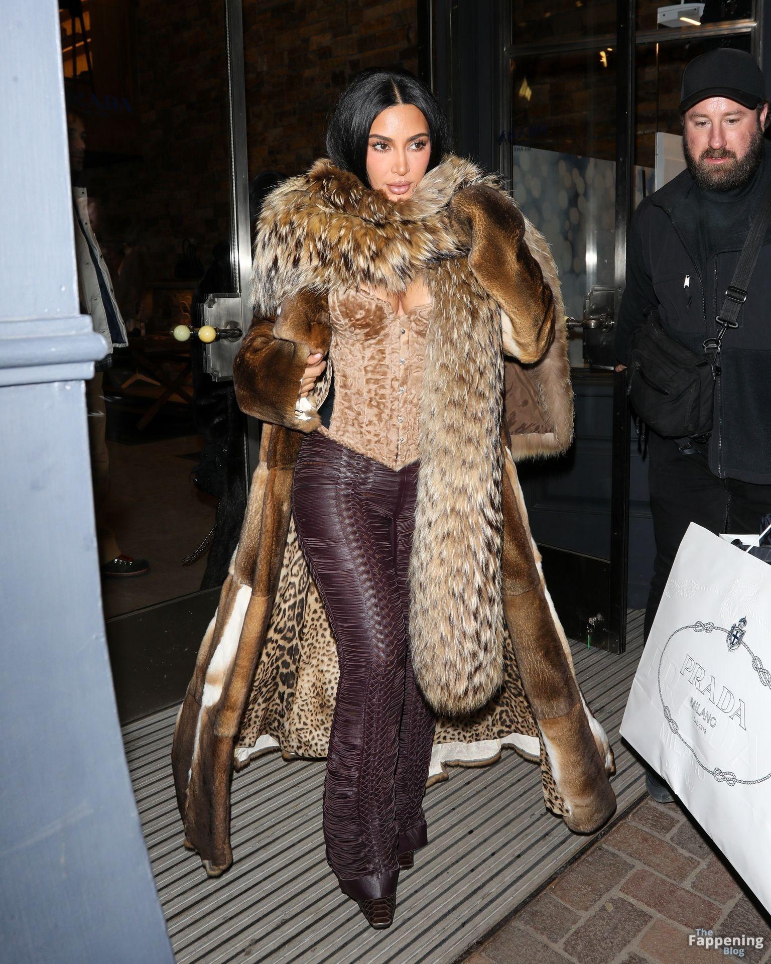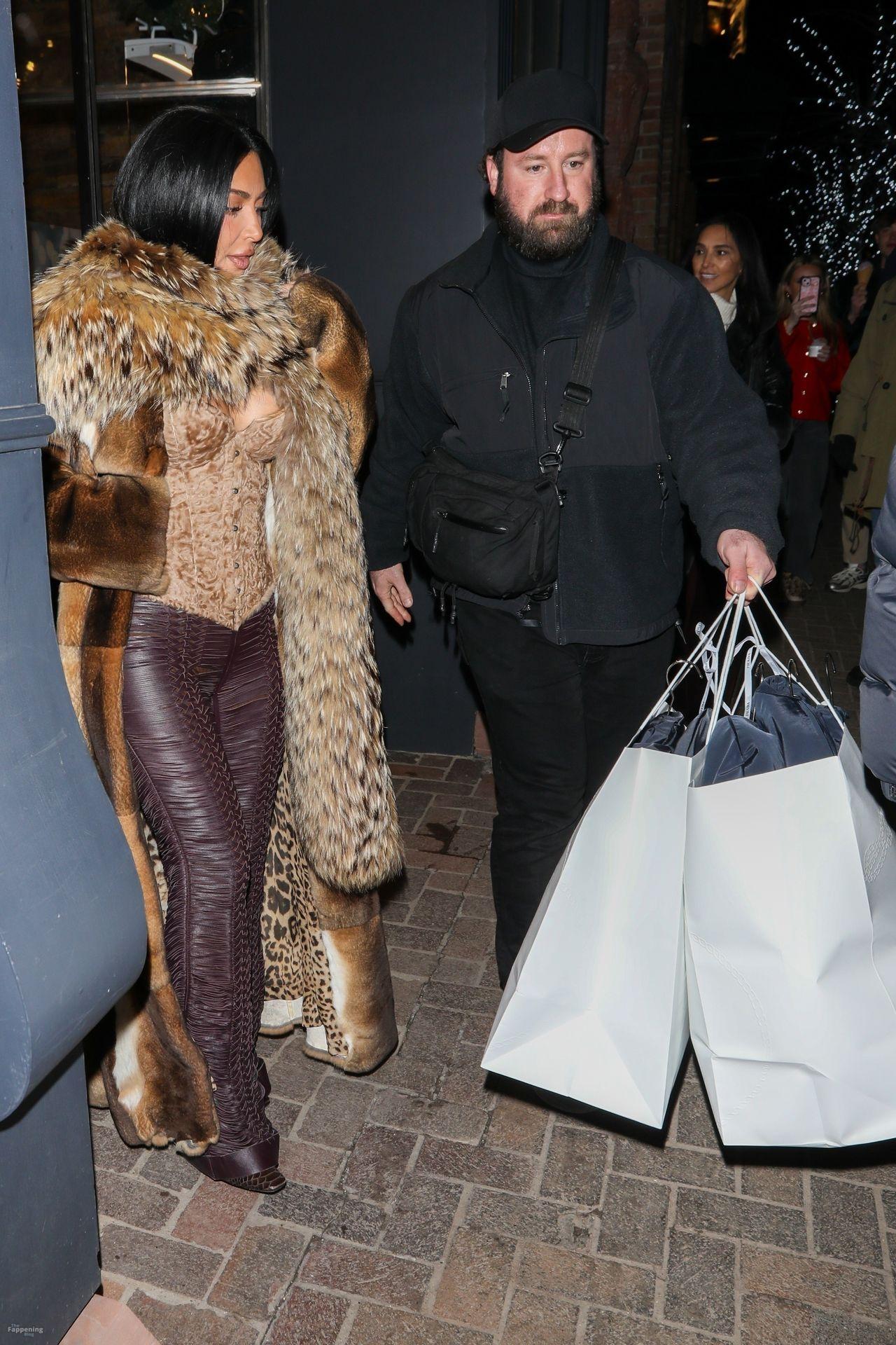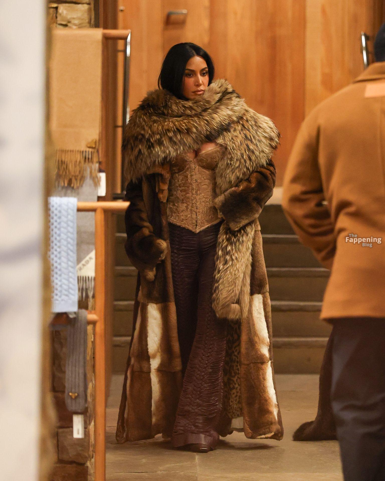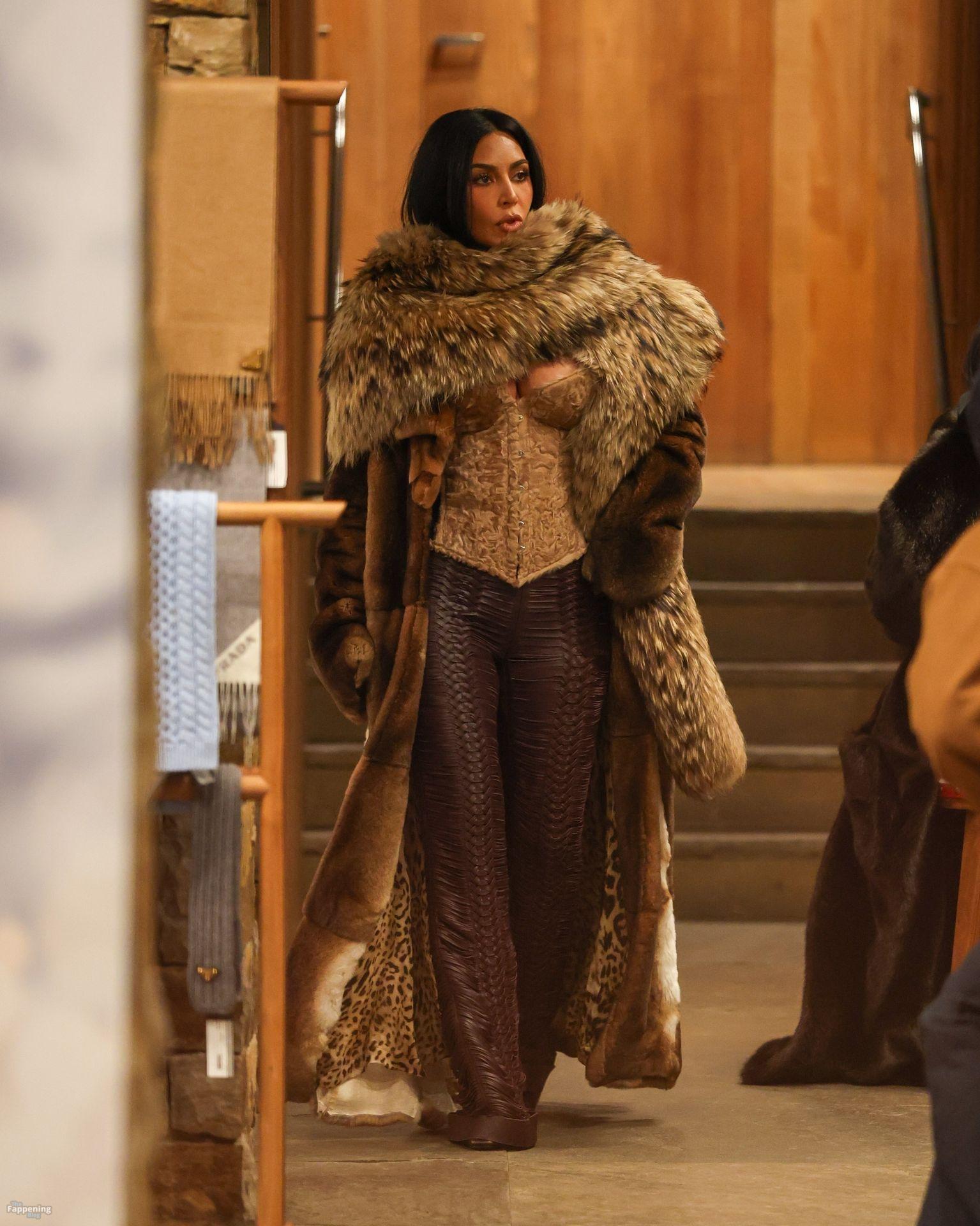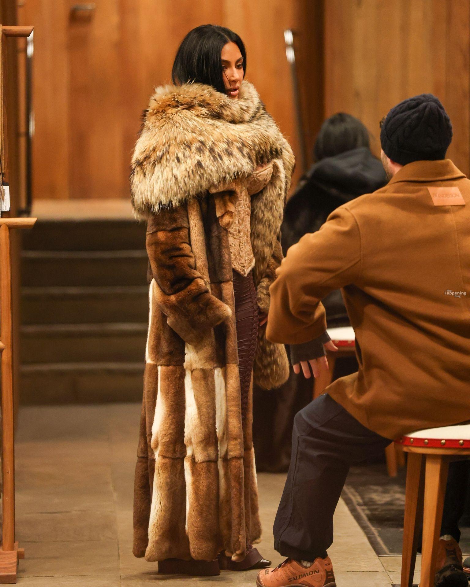 Kim Kardashian looks stylish bundled up in fur as she was spotted exitin’ the Prada Store in Aspen after shopping.