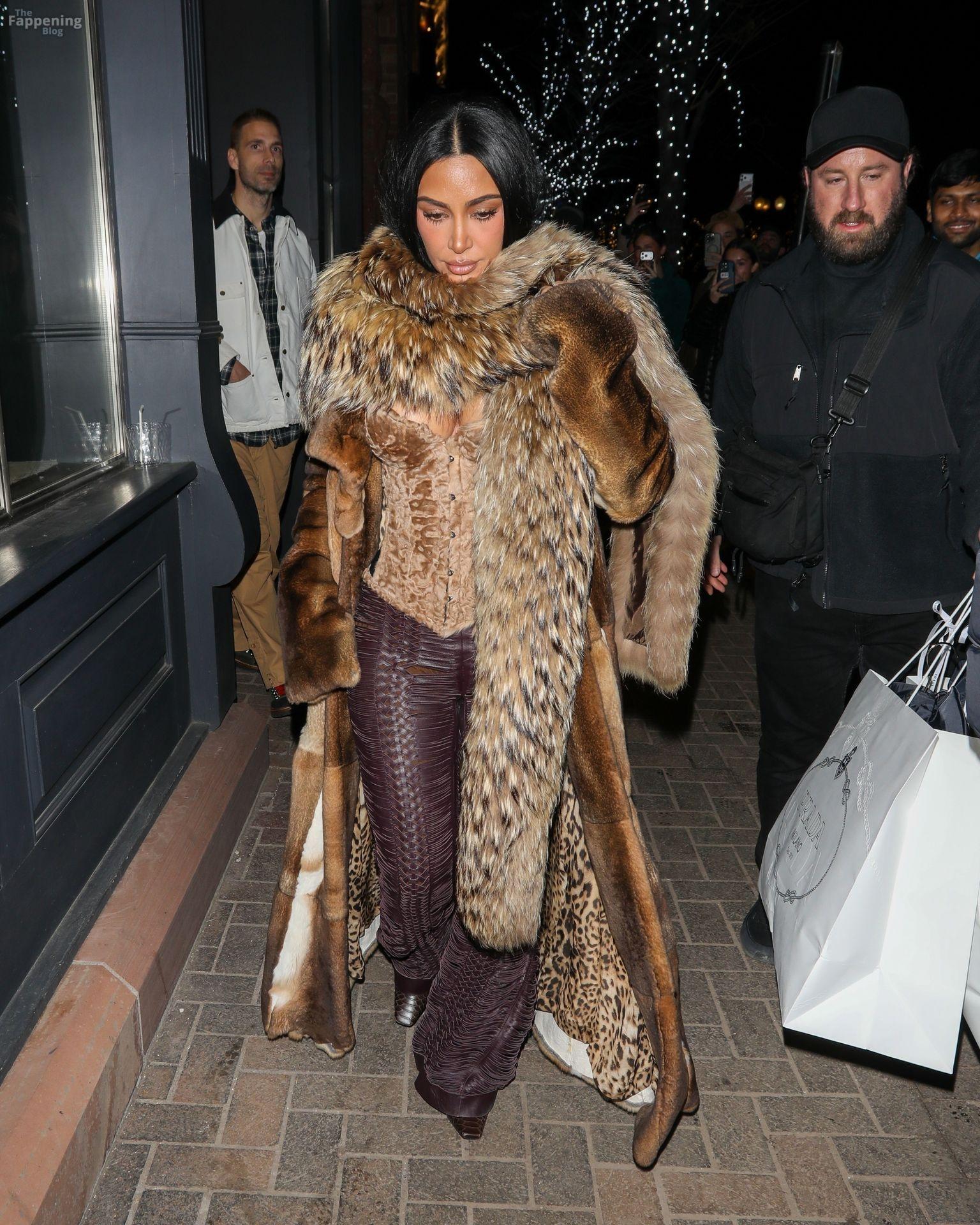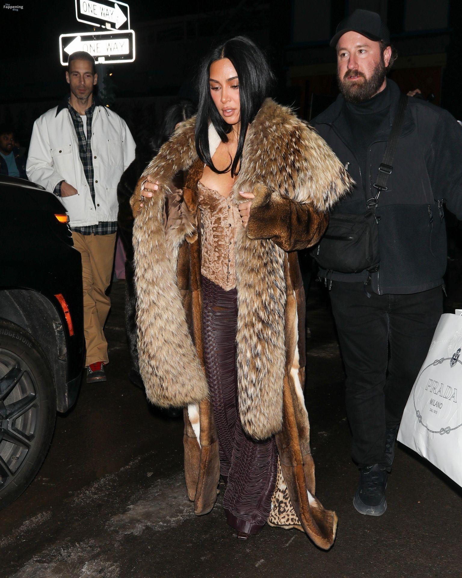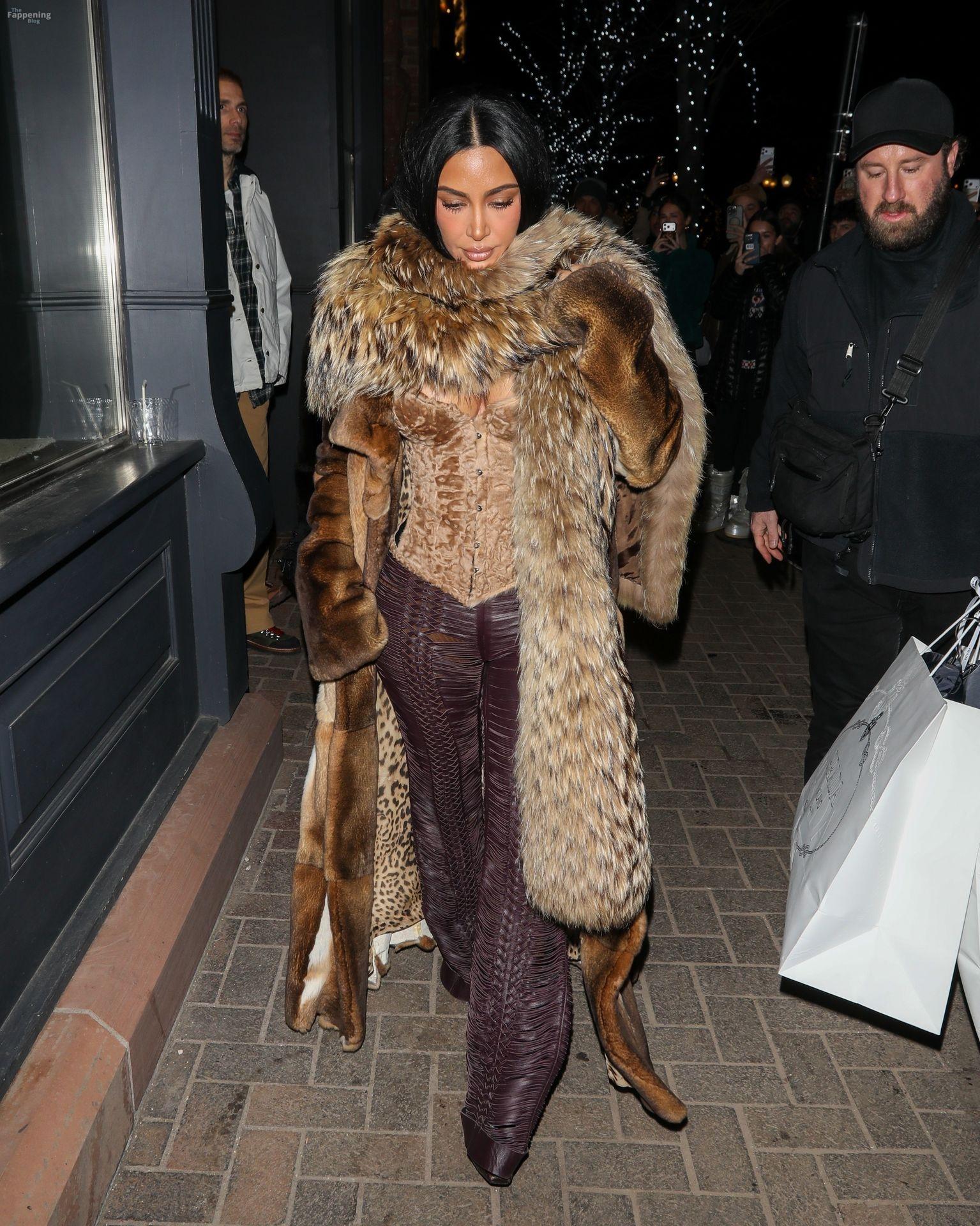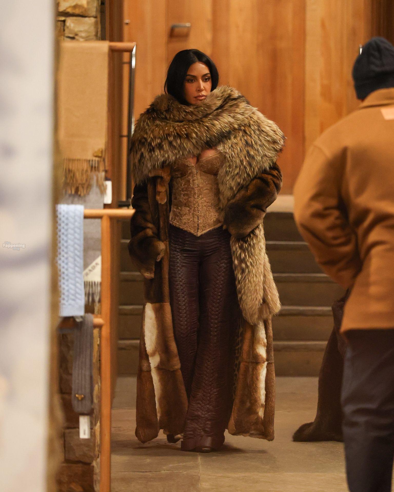 Kim Kardashian looks stylish bundled up in fur as she was spotted exitin’ the Prada Store in Aspen after shopping.