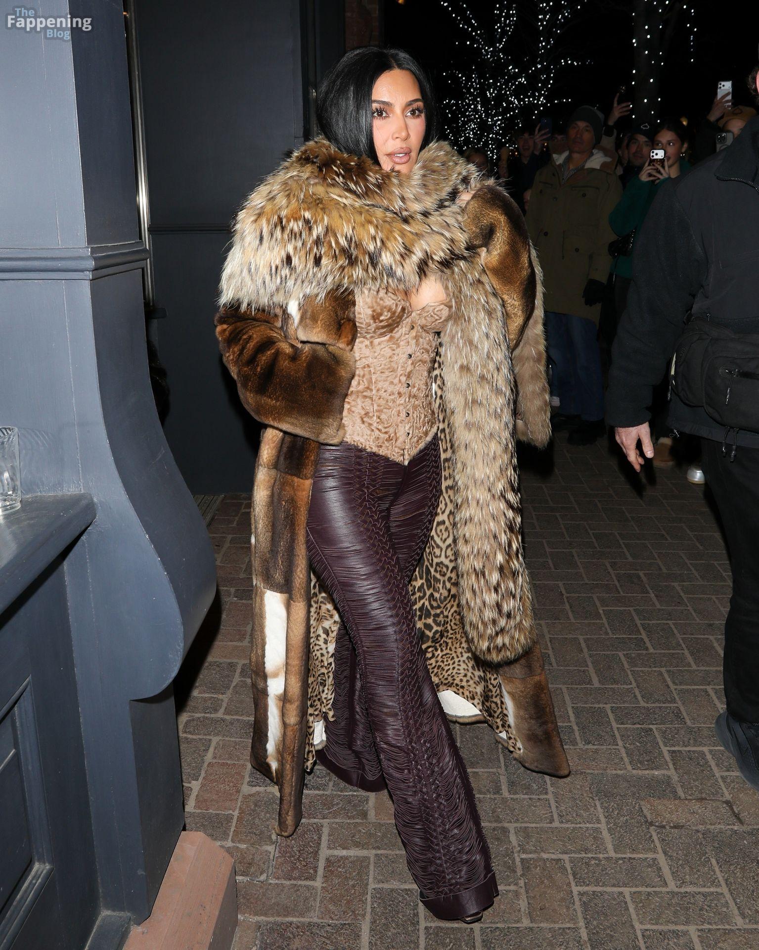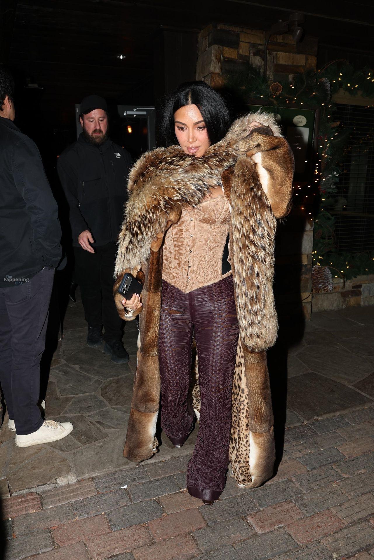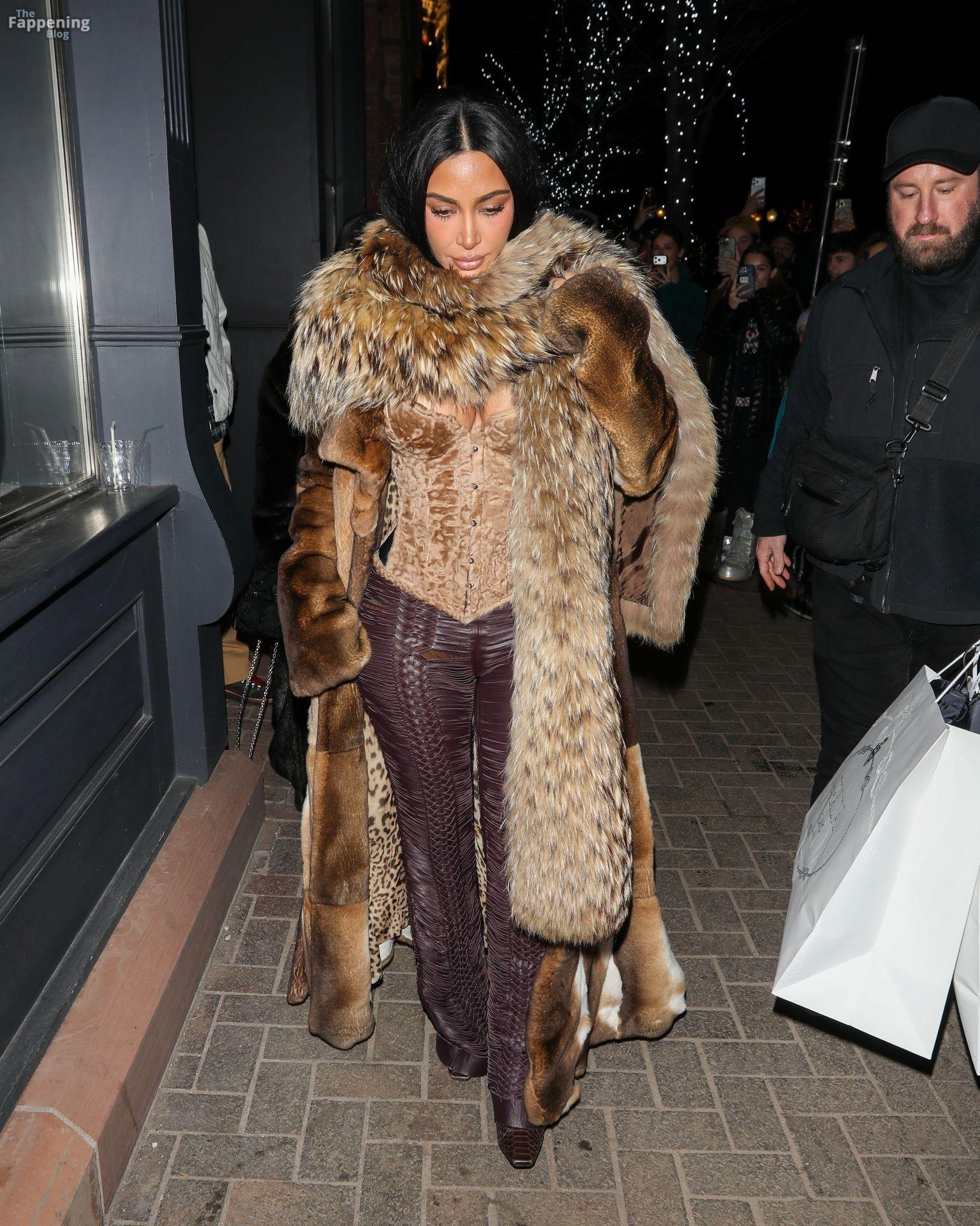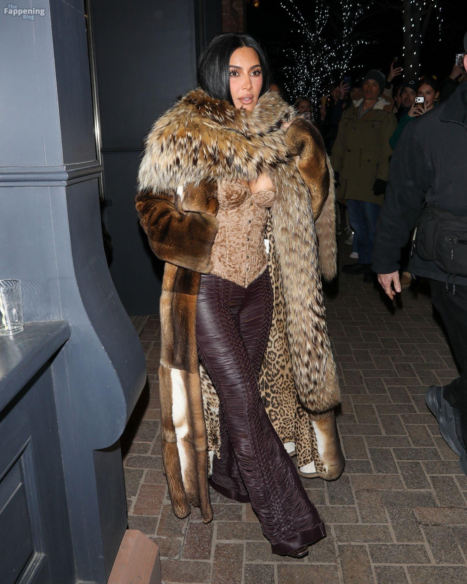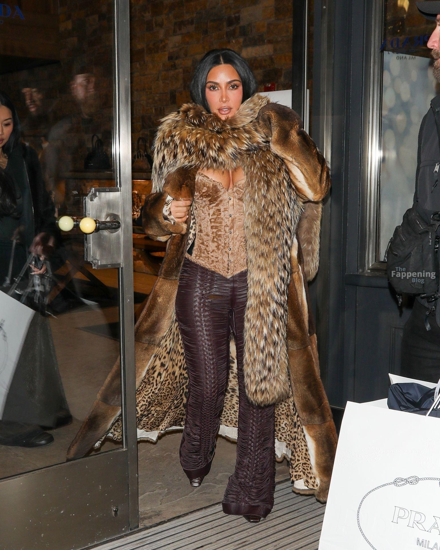 Kim Kardashian looks stylish bundled up in fur as she was spotted exitin’ the Prada Store in Aspen after shopping.