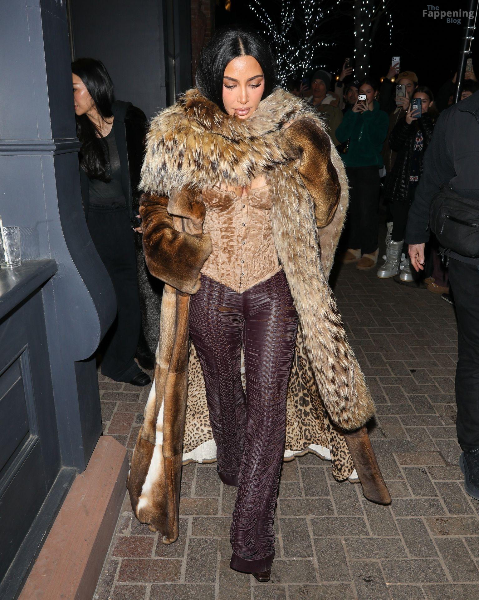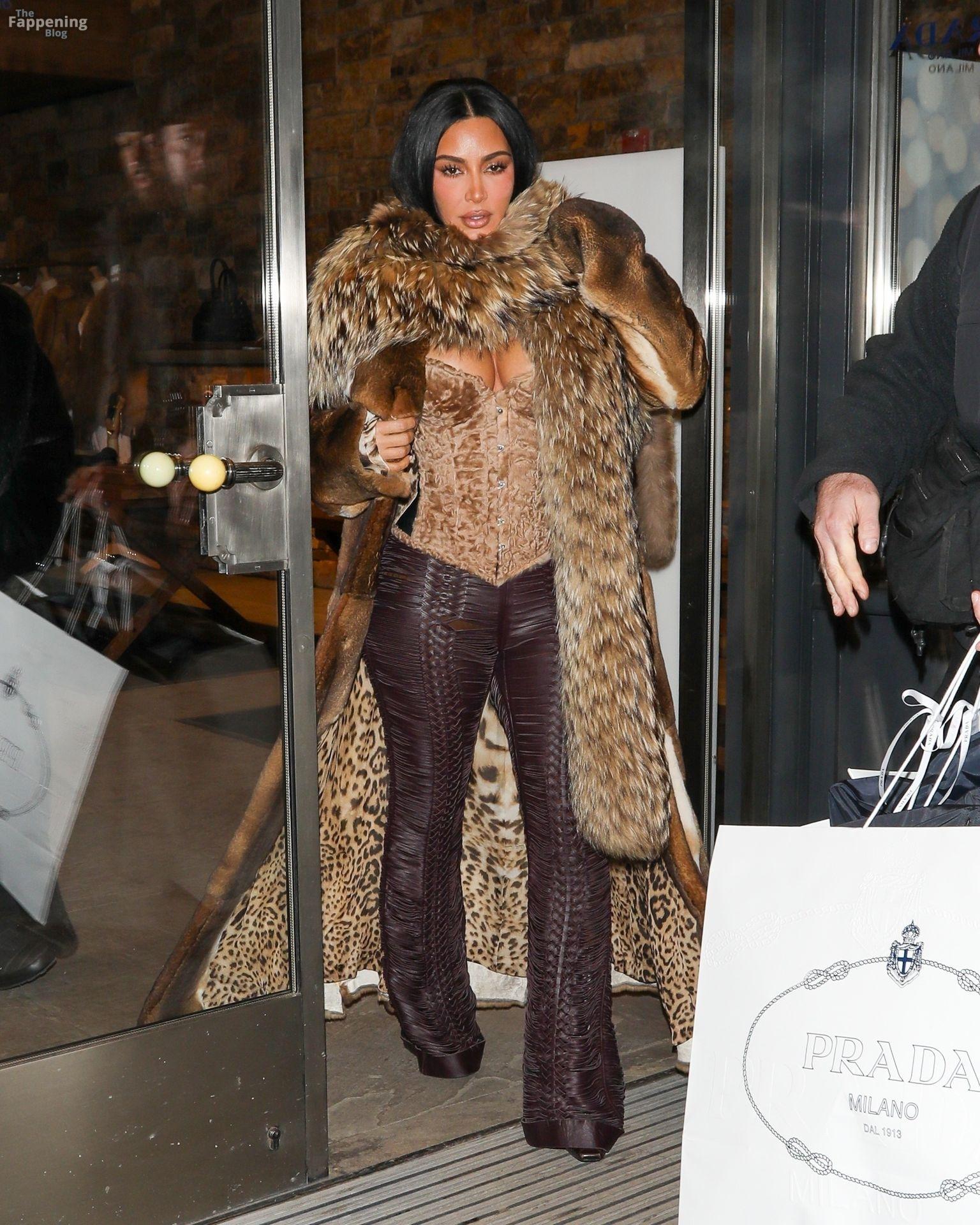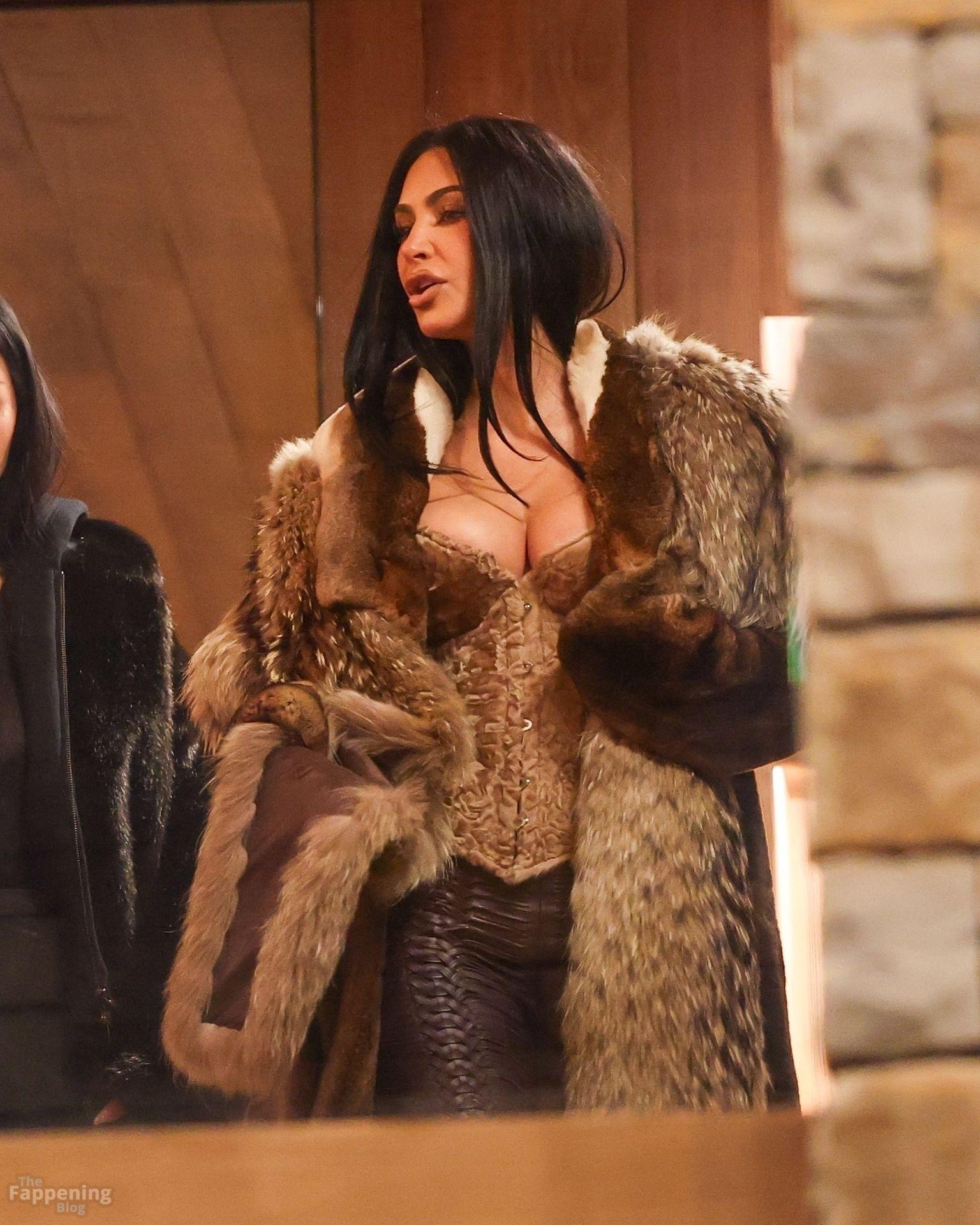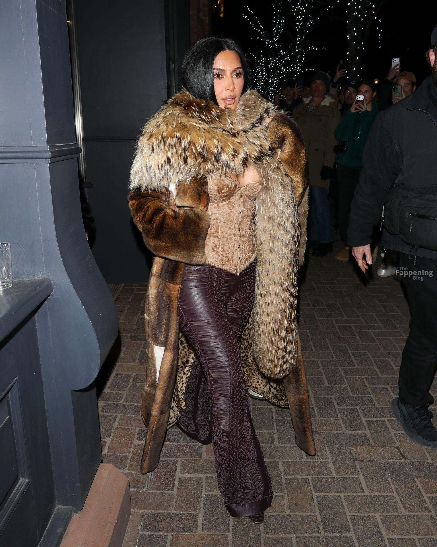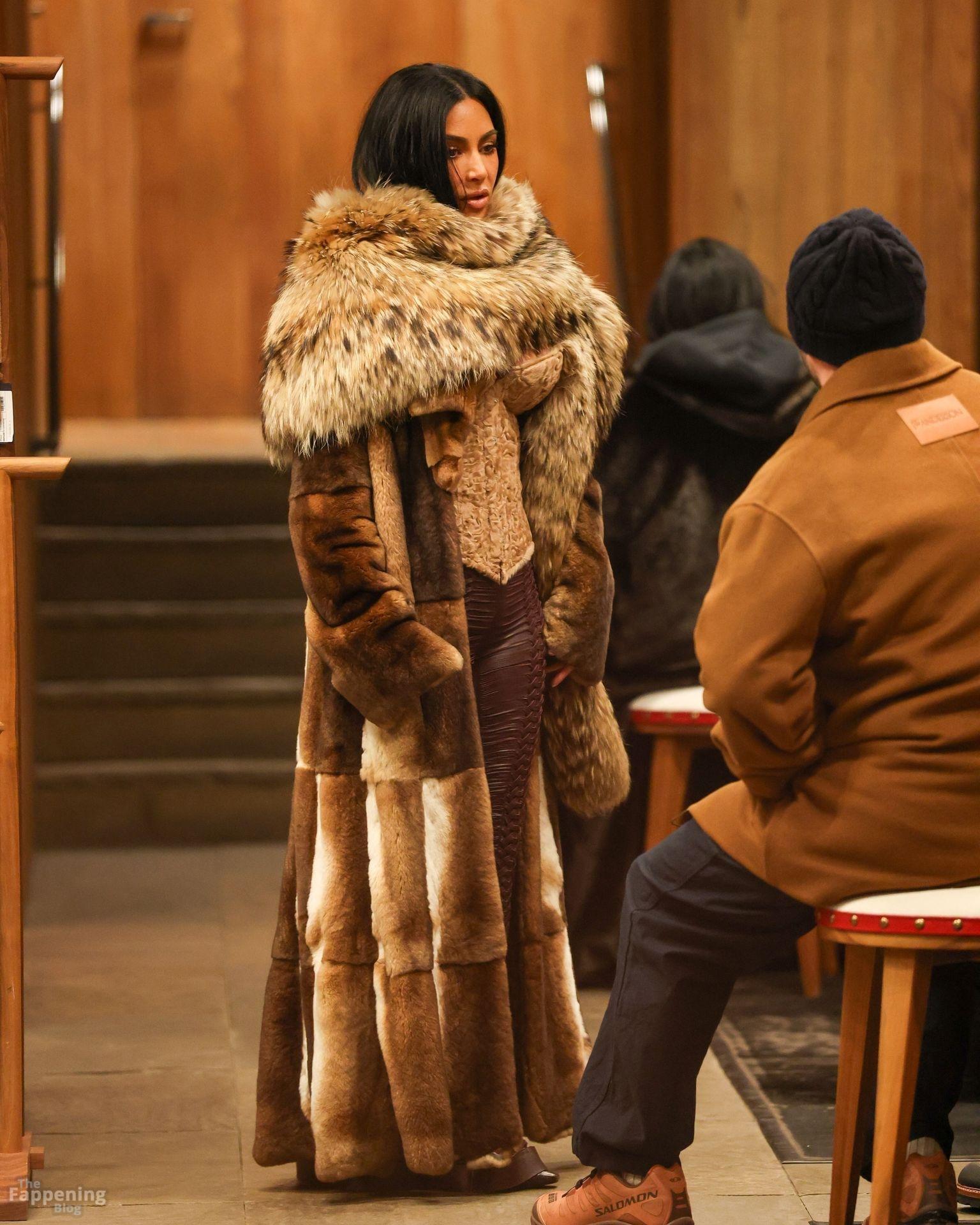 Kim Kardashian looks stylish bundled up in fur as she was spotted exitin’ the Prada Store in Aspen after shopping.