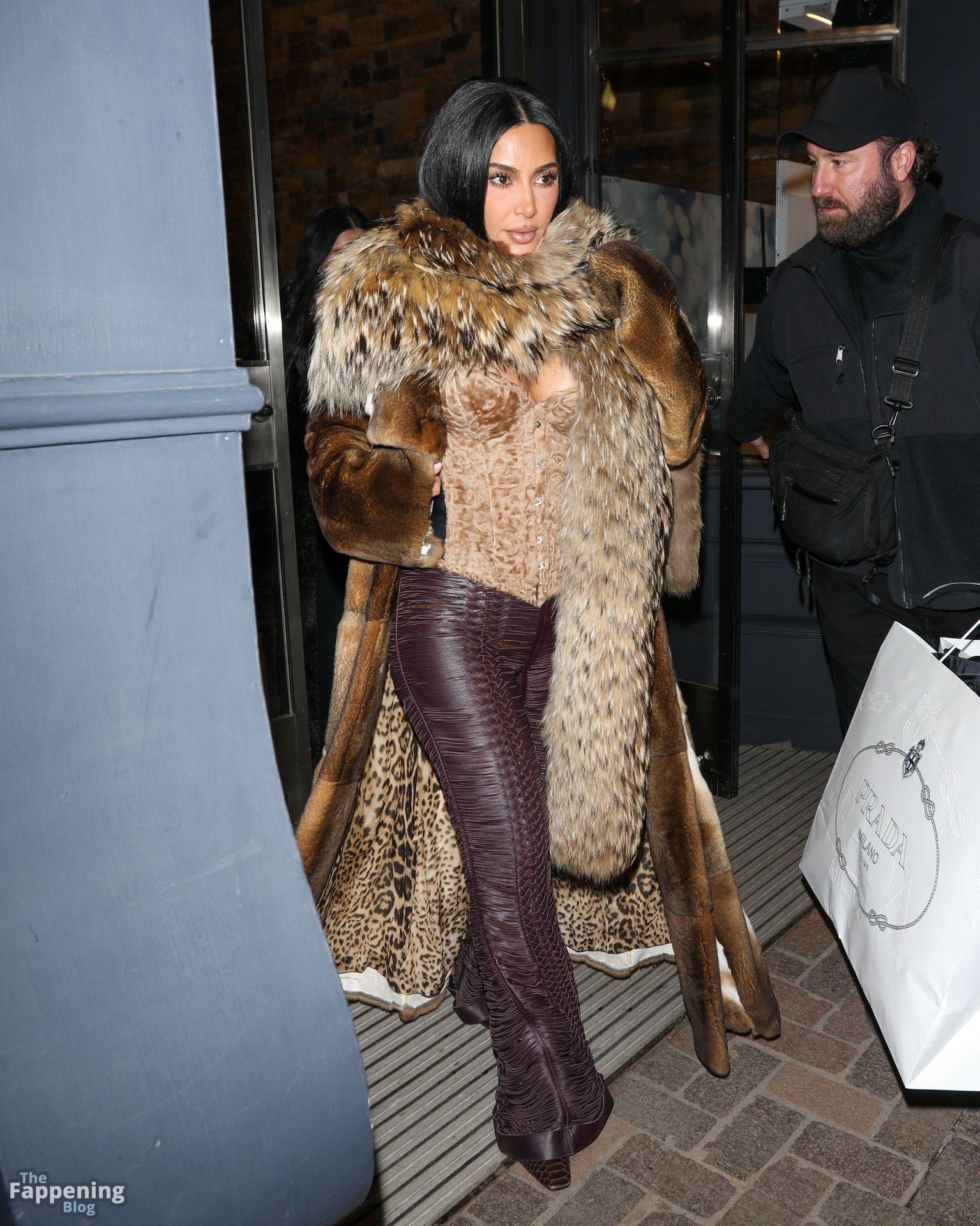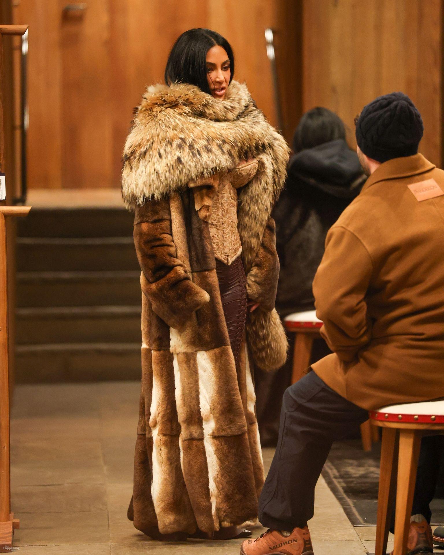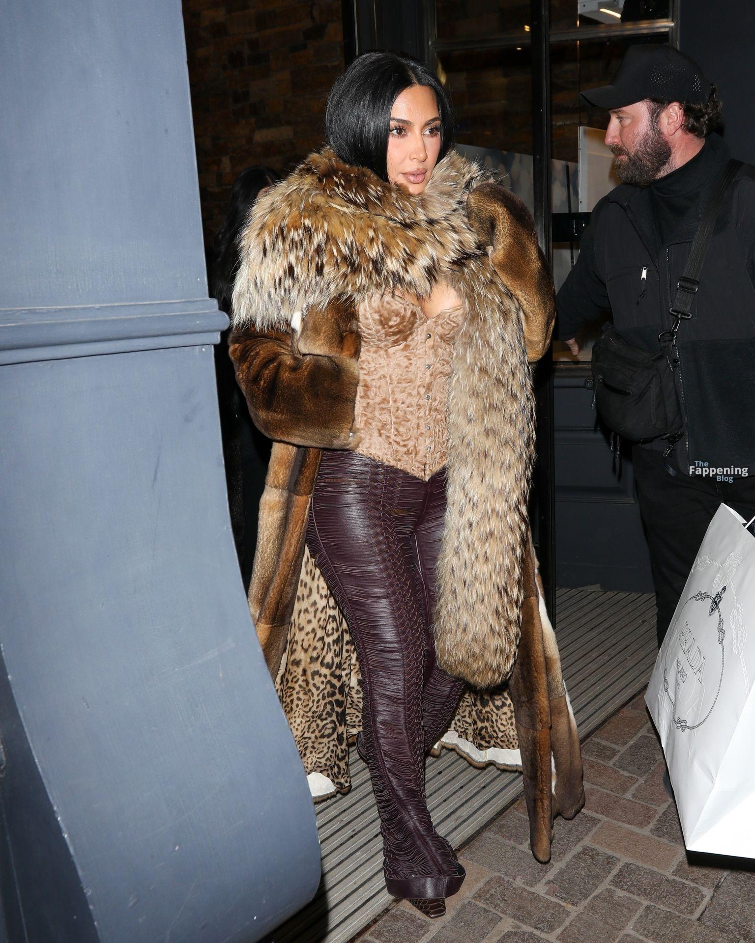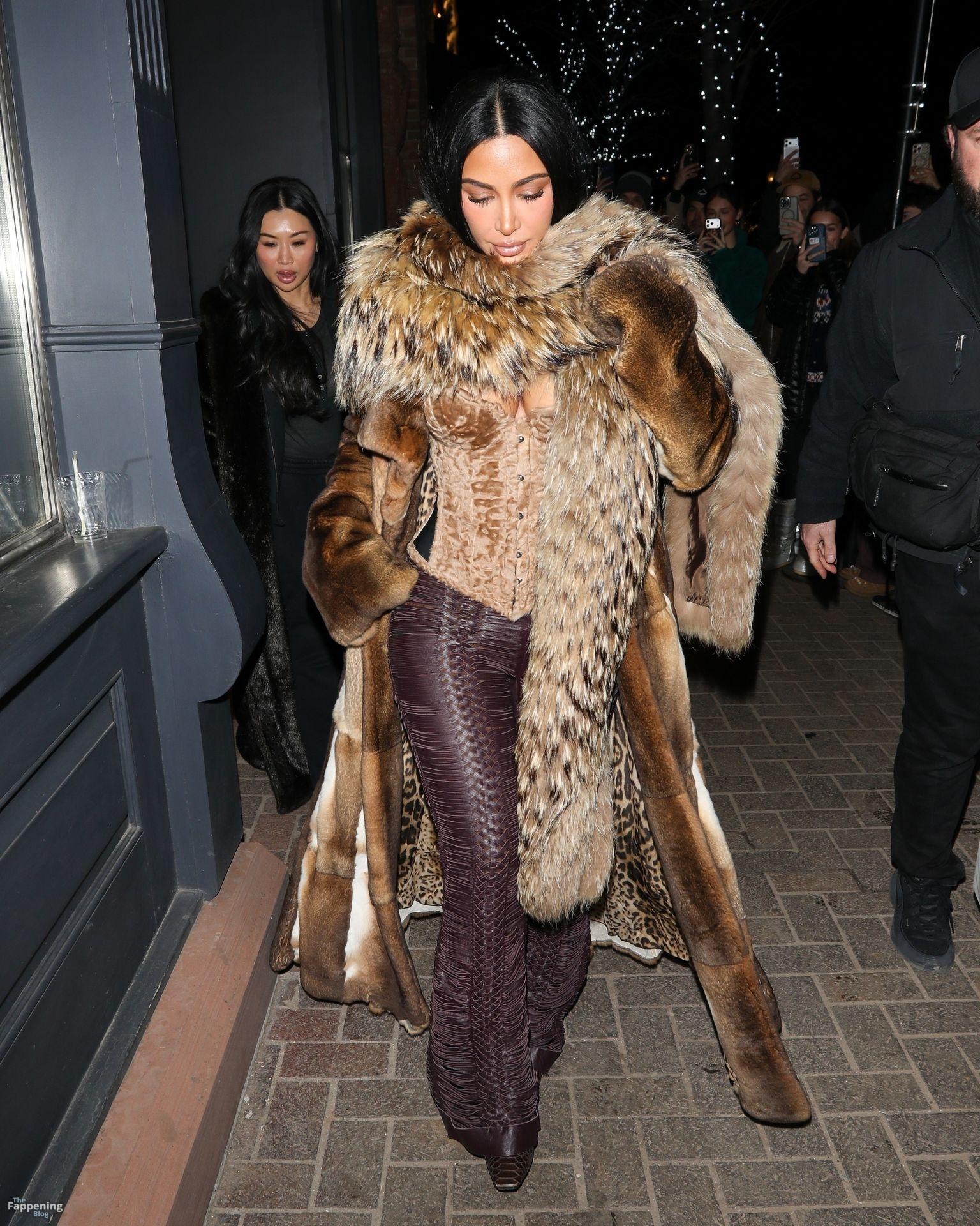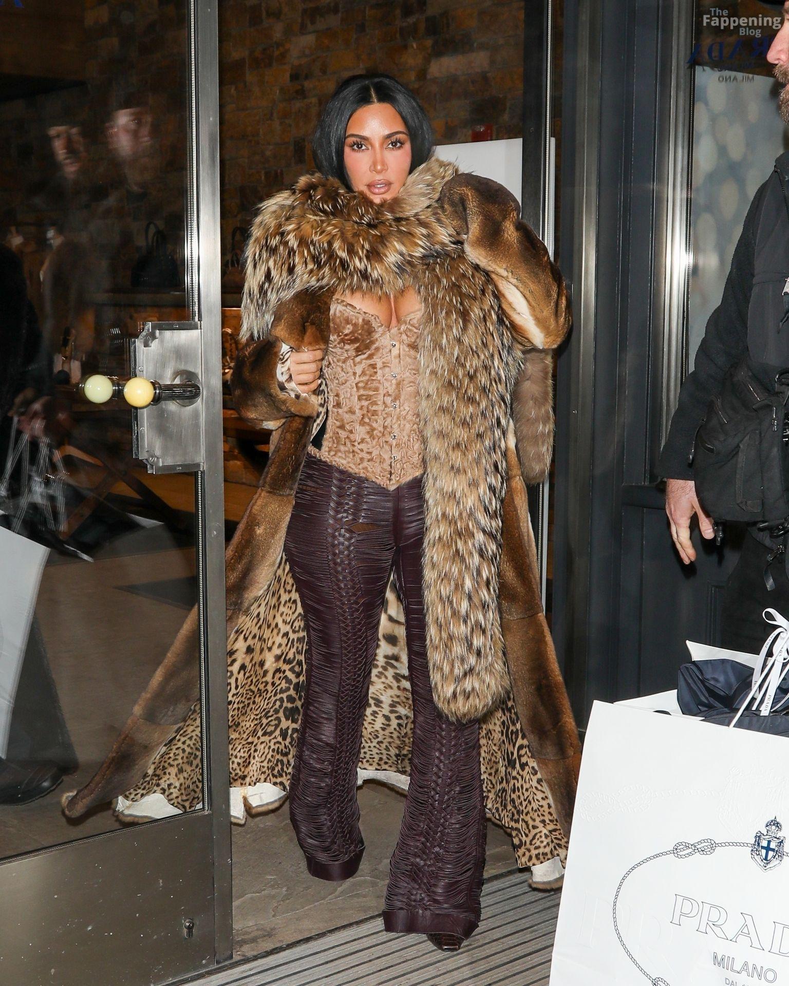 Kim Kardashian looks stylish bundled up in fur as she was spotted exitin’ the Prada Store in Aspen after shopping.