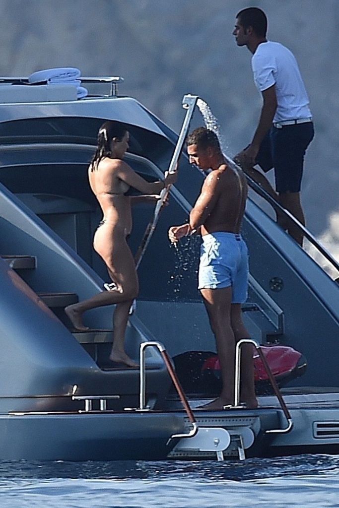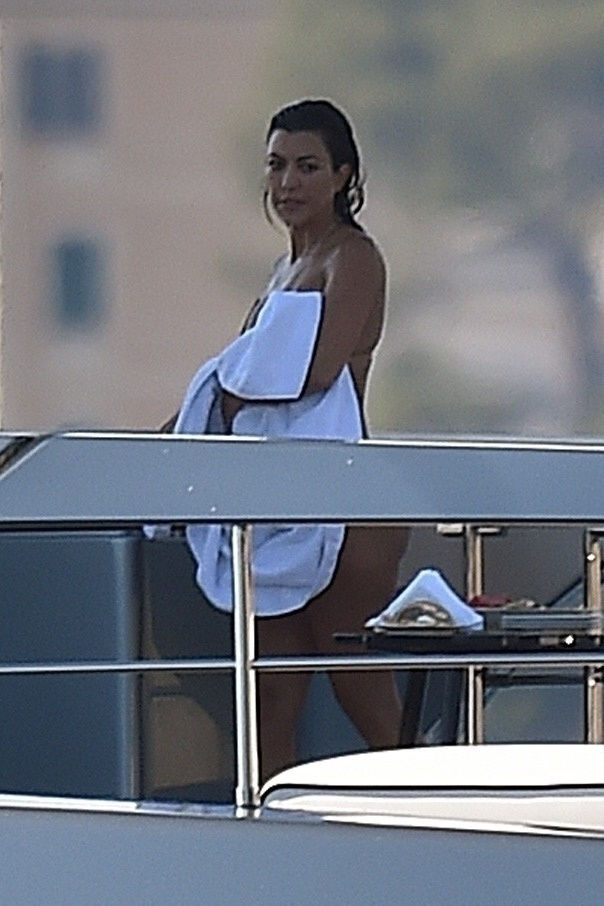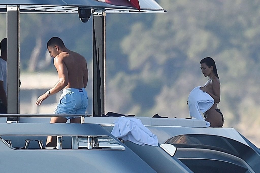 Curvy brunette Kourtney Kardashian and boyfriend Younes Bendjima keep on their summer holiday getaway on a super yacht in Portofino, Italy, 06/29/2018.