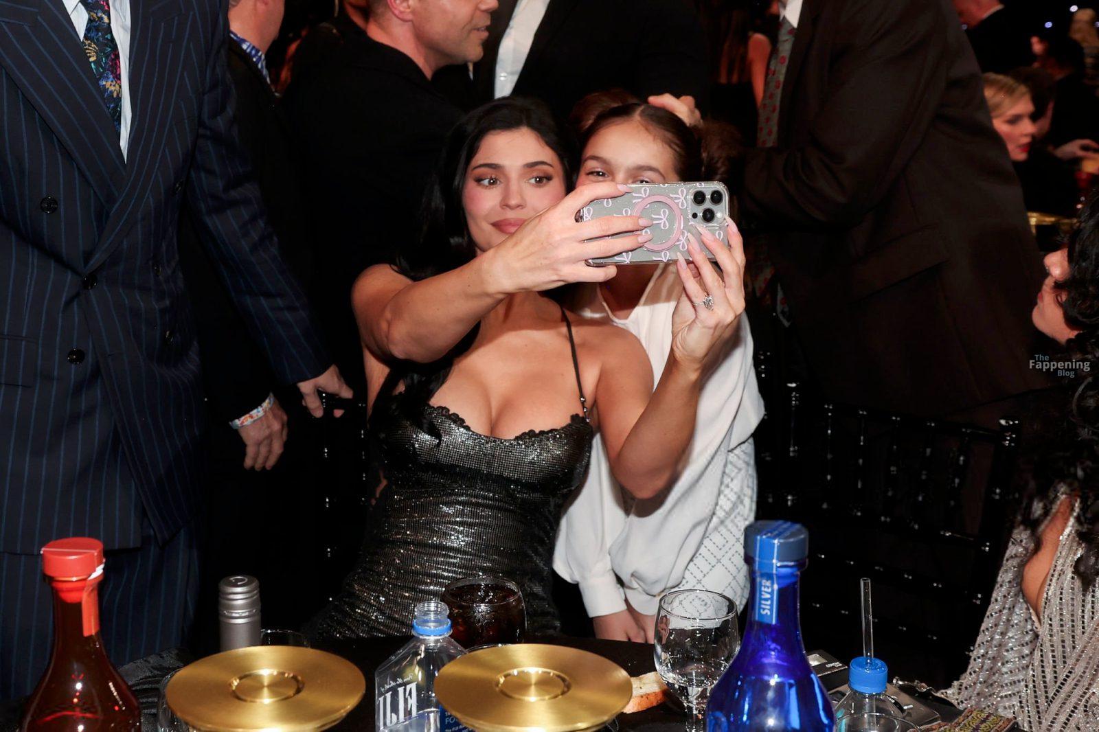 Kylie Jenner looks hot in a sheer dress, showin’ off her famous cleavage at the 31st Annual Critics Choice Awards in Santa Monica.