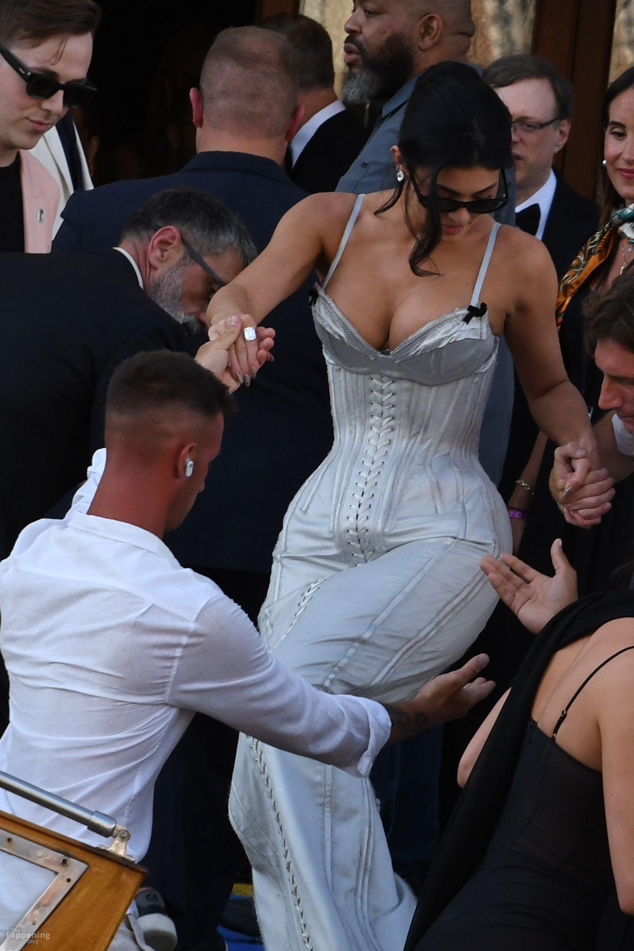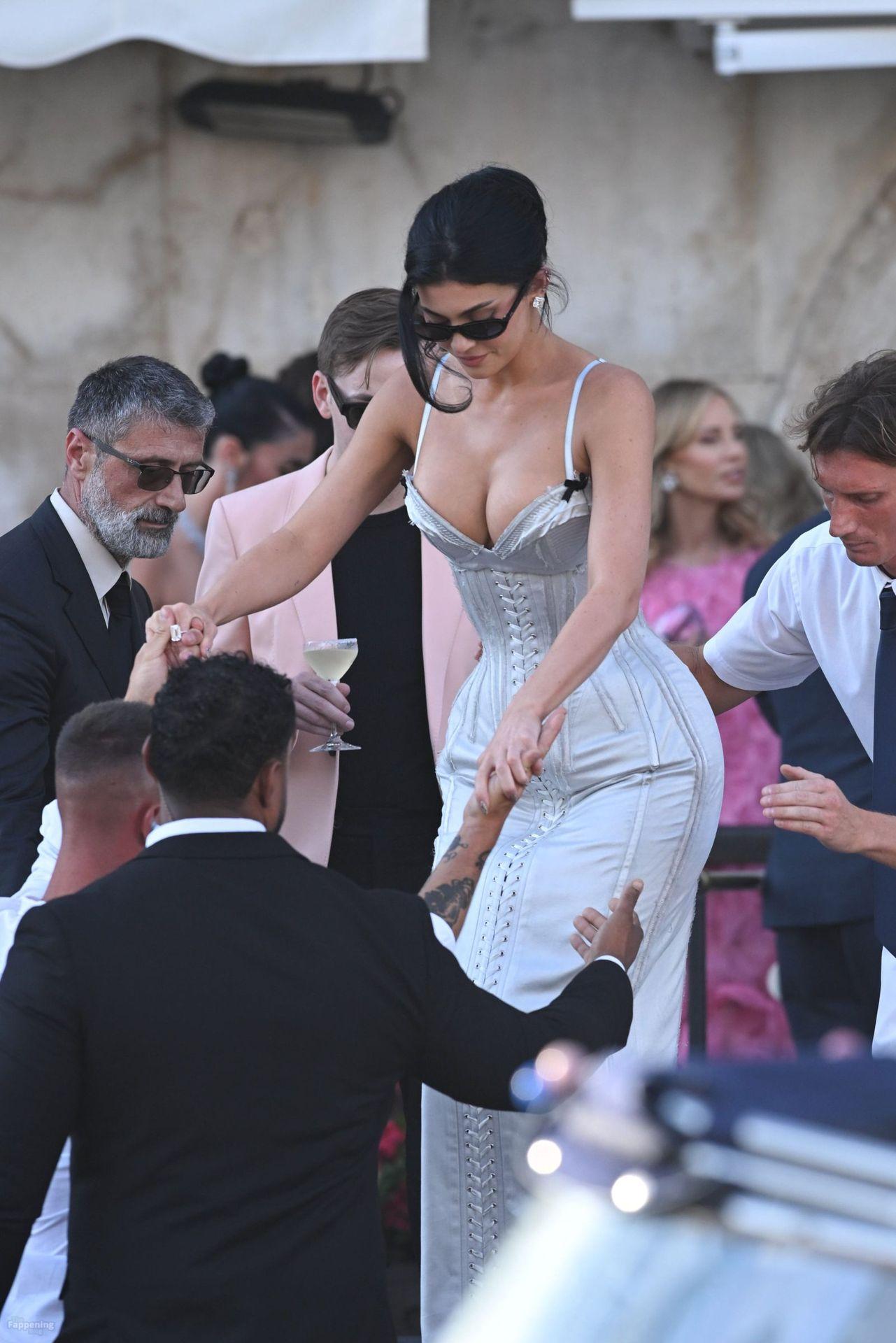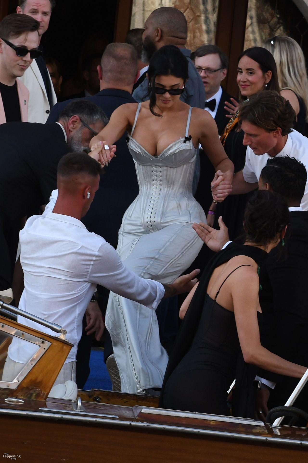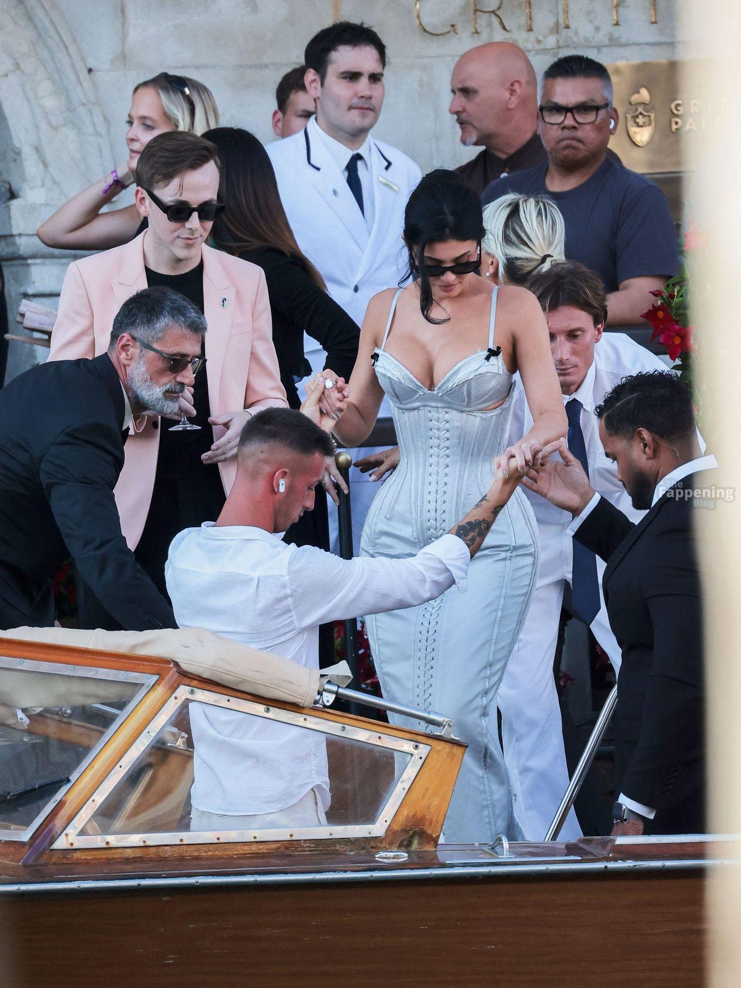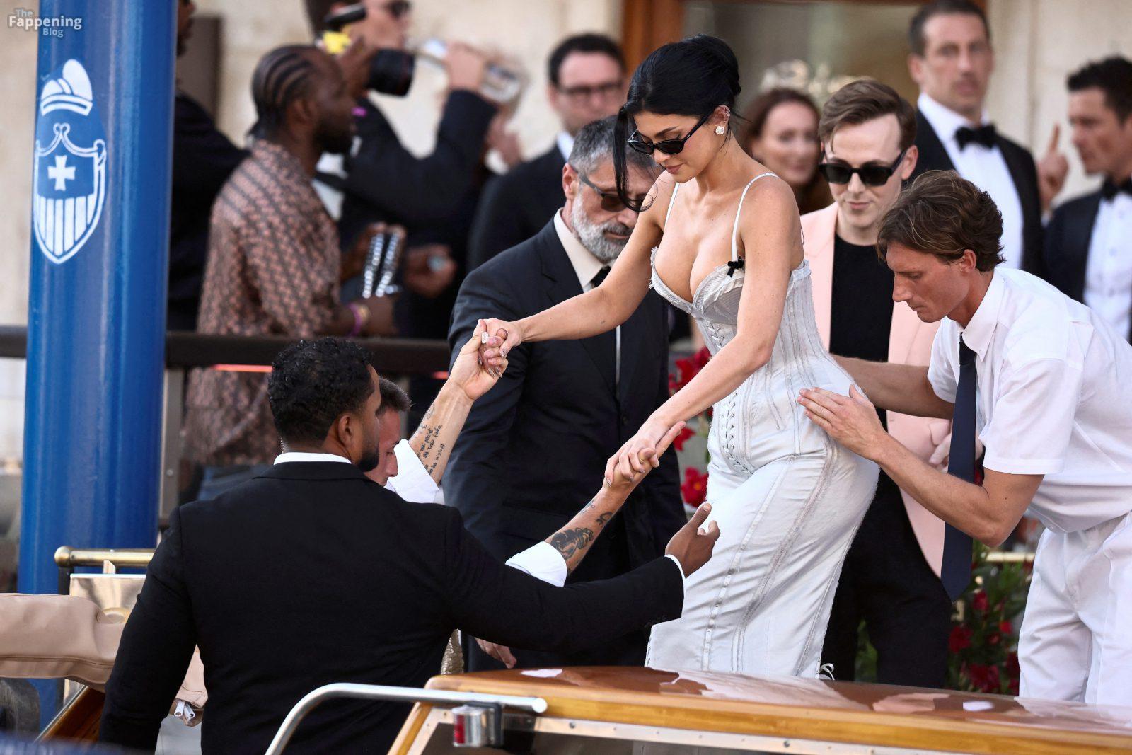 Kylie Jenner puts her sexy tits on full display in Venice, barely contained in a corset dress while struttin’ the streets.