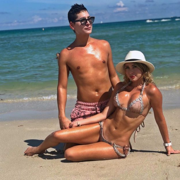Colombian actress Laura Monroy (25) is noticed topless while sunbathing at the beach in Miami beach front, 09/13/2018. Laura wore a white panama hat and a thong bikini as she calm in the sunlight in Miami.