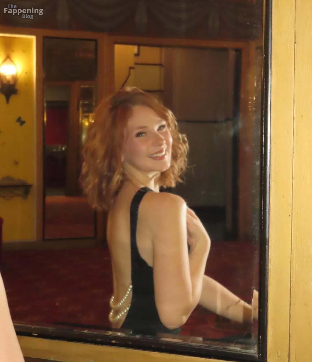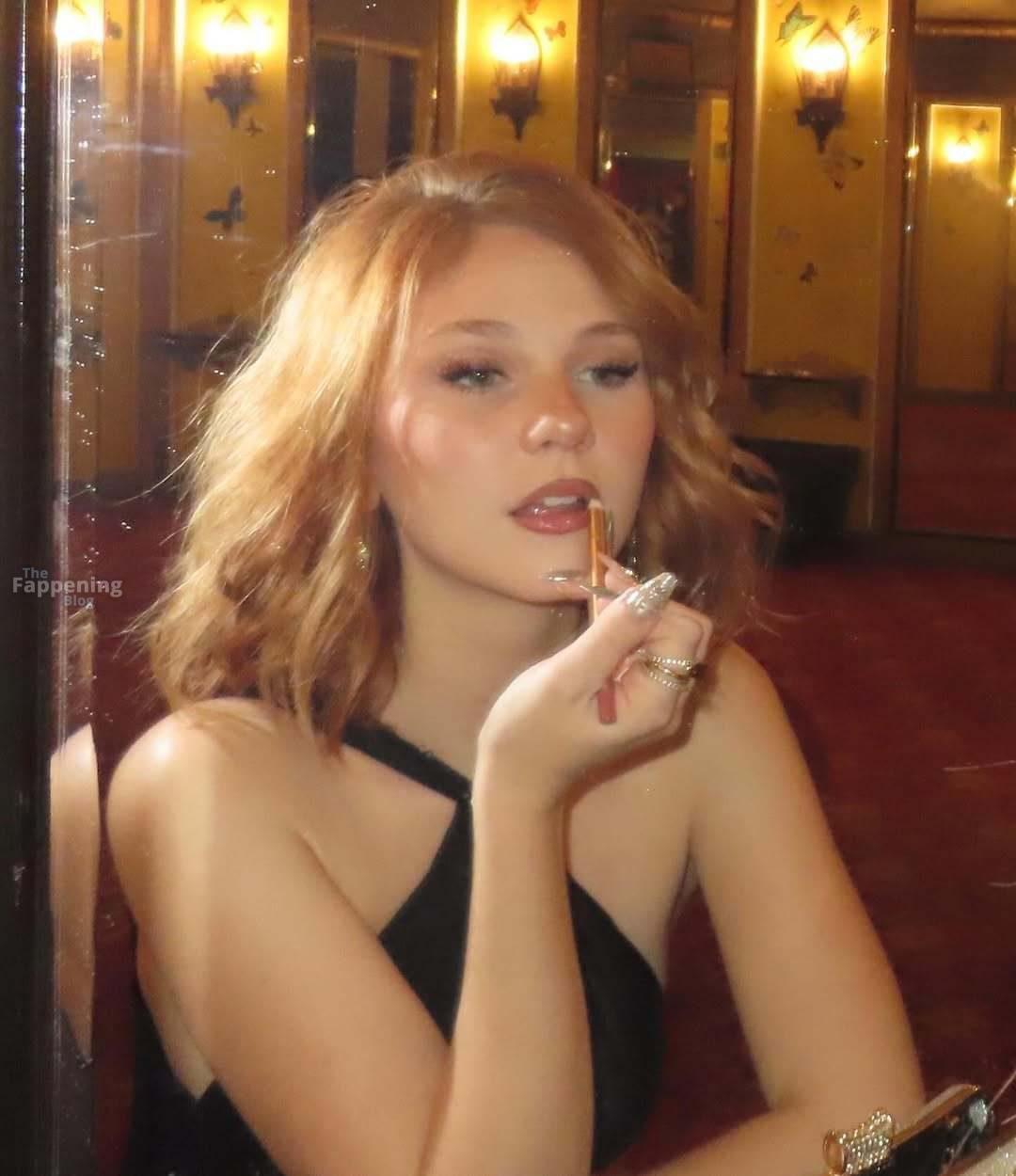 Lily Brooks O’Briant (19) stuns, wearin’ a black halter dress, takin’ some sexy photos for her new shoot.