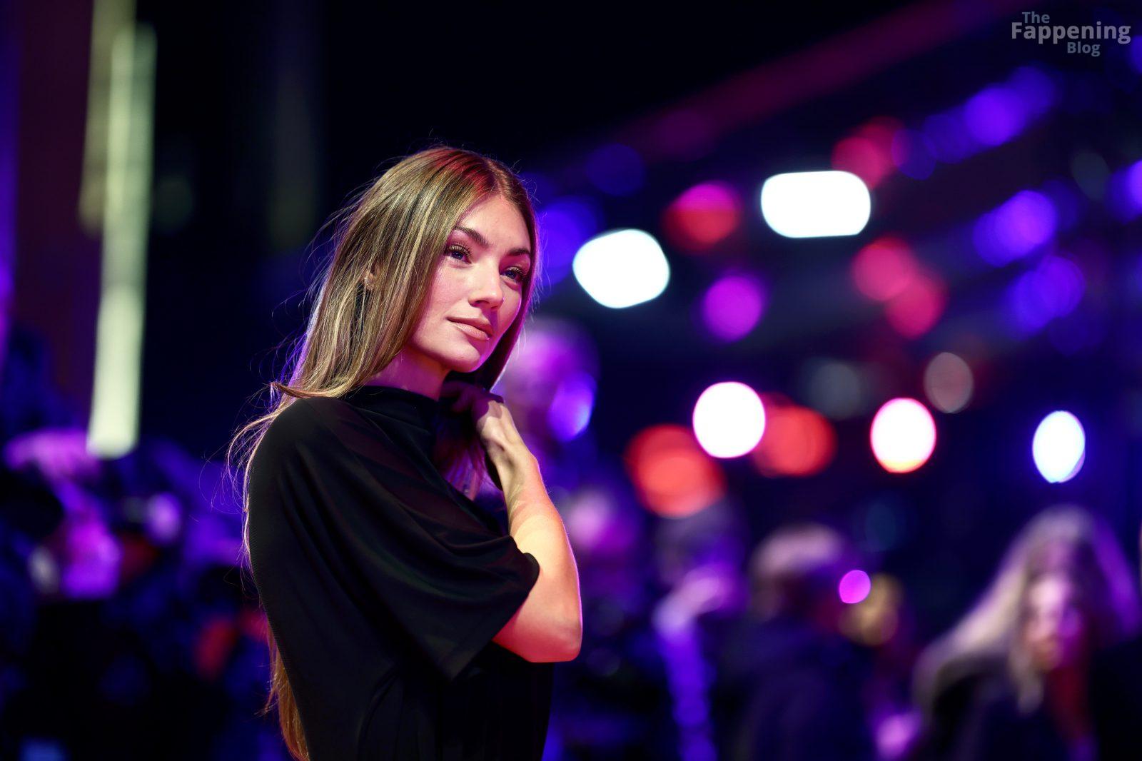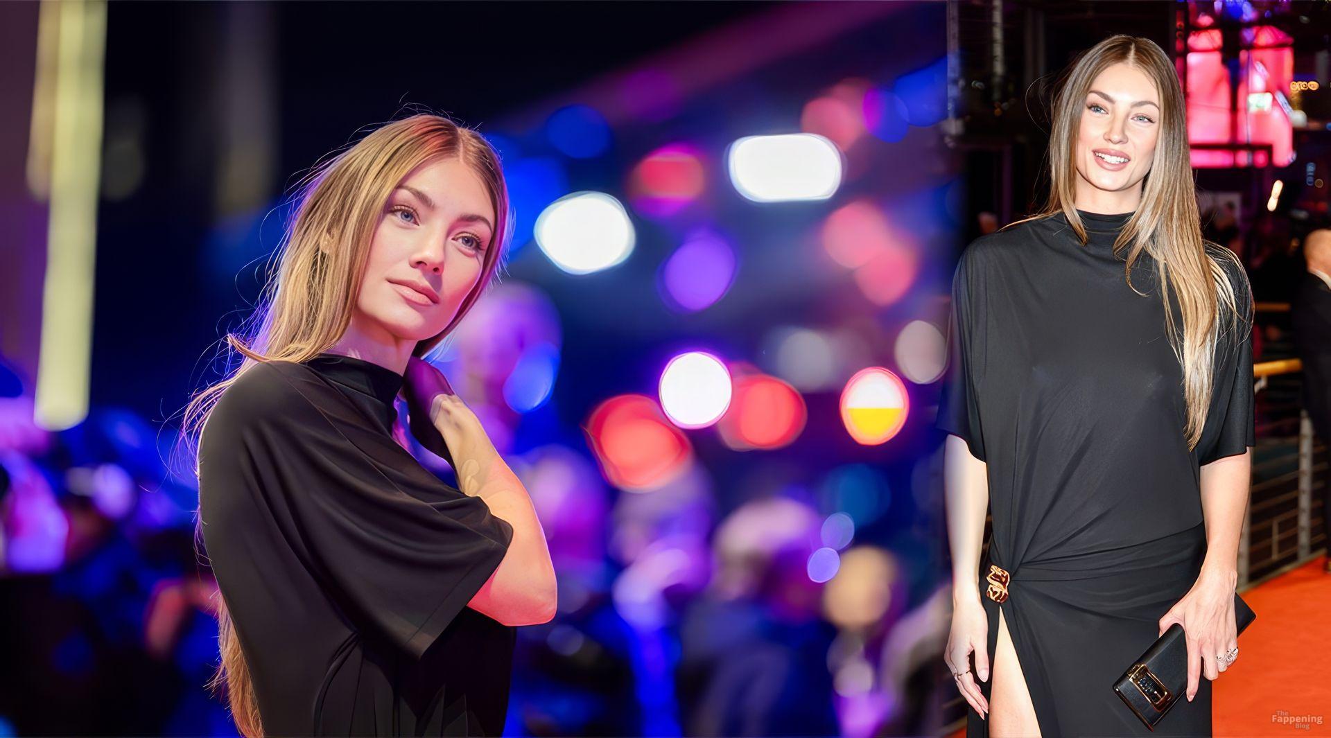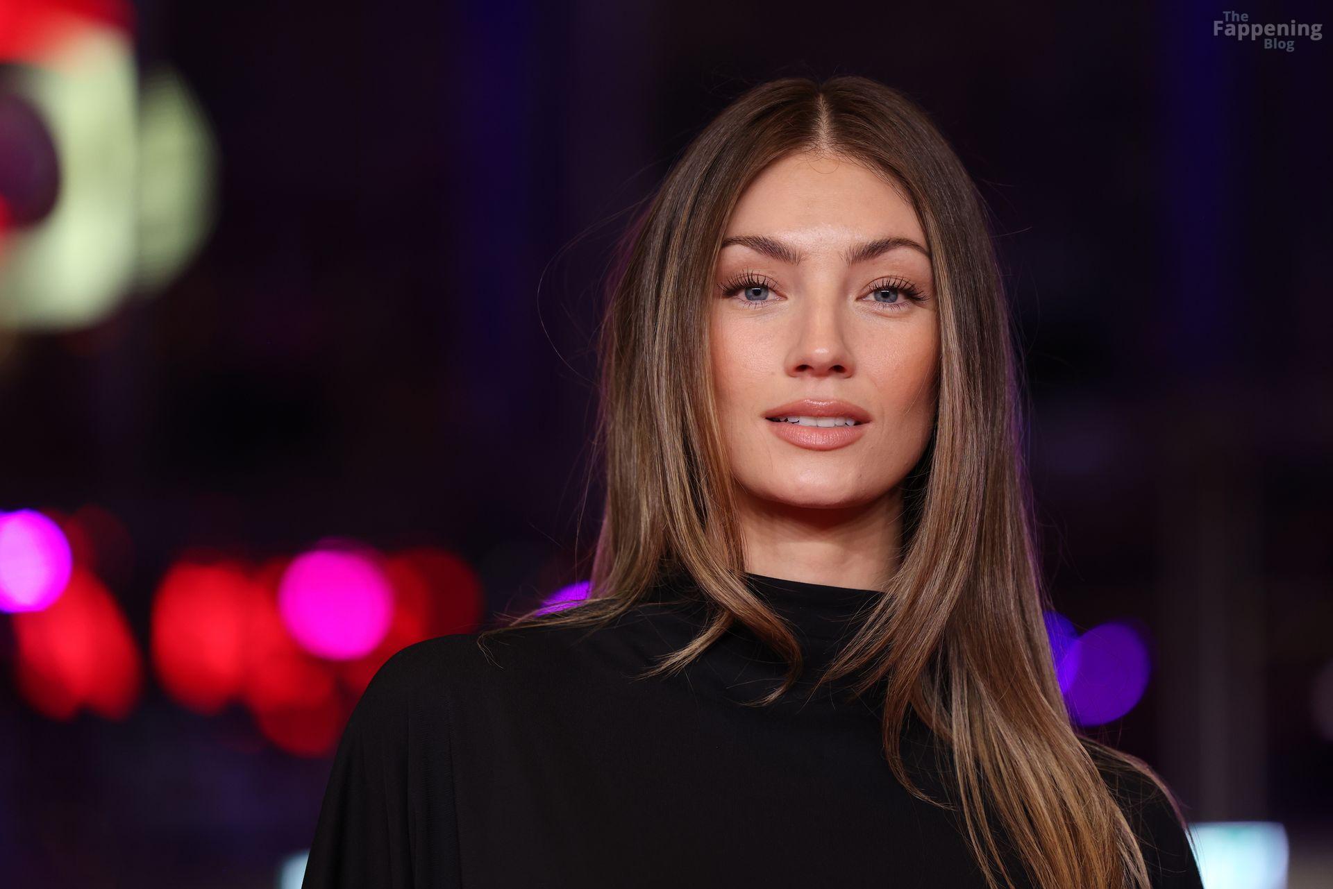 German fashion model Lorena Rae arrives on the red carpet for the premiere of the film “No Good Men” presented in the Berlinale Special Gala section and opening the 76th Berlinale, Europe’s first major film festival of the year.