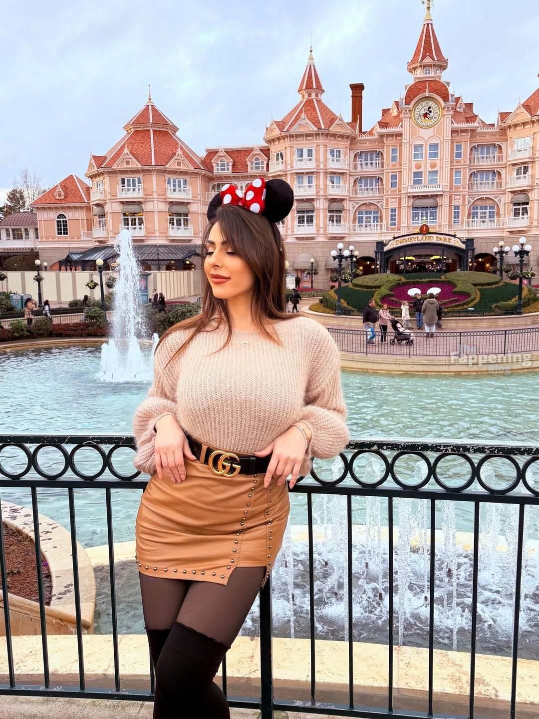 Maddalena Cabizzosu stuns at Disneyland Paris in a sweater, mini skirt and Minnie ears. Check out her beautiful figure in the social media photos.