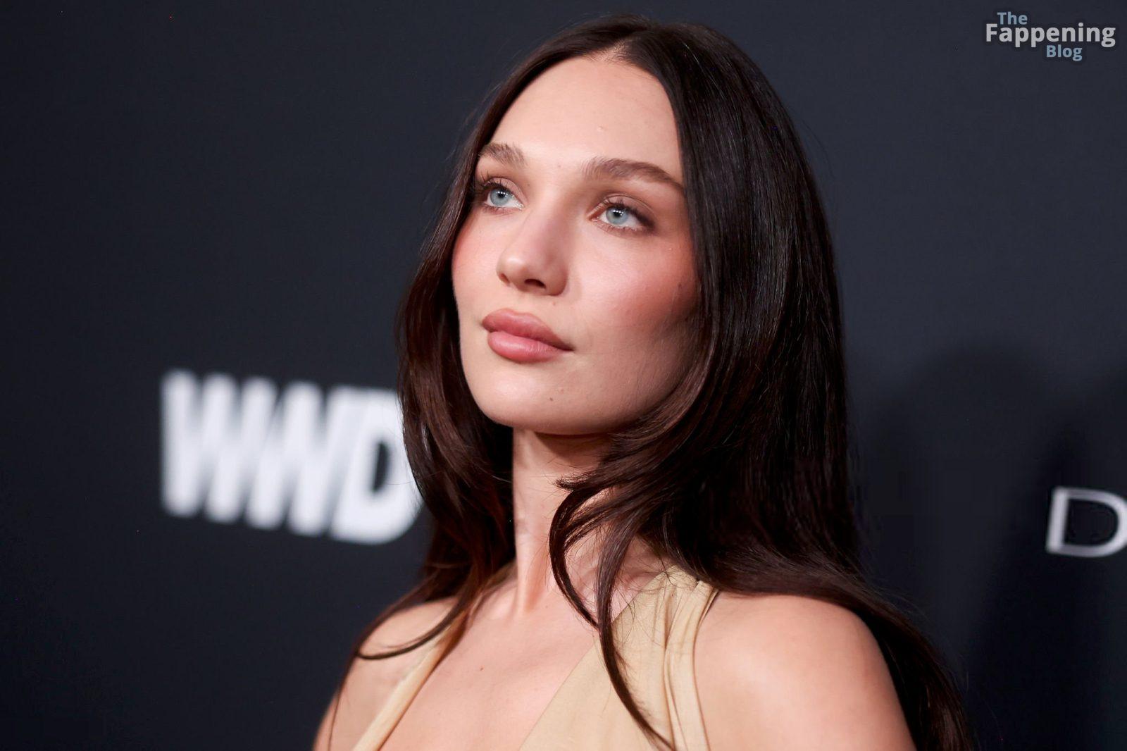 Maddie Ziegler goes braless at The 2026 WWD Style Award in Santa Monica. Look at her pokies through a thin gold silk dress.