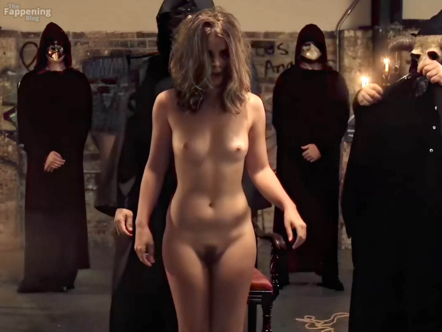 Manon Pages goes full-frontal in The Demonologist: completely naked, tits out, bush on display, every inch of that tight French body lit up and enhanced.