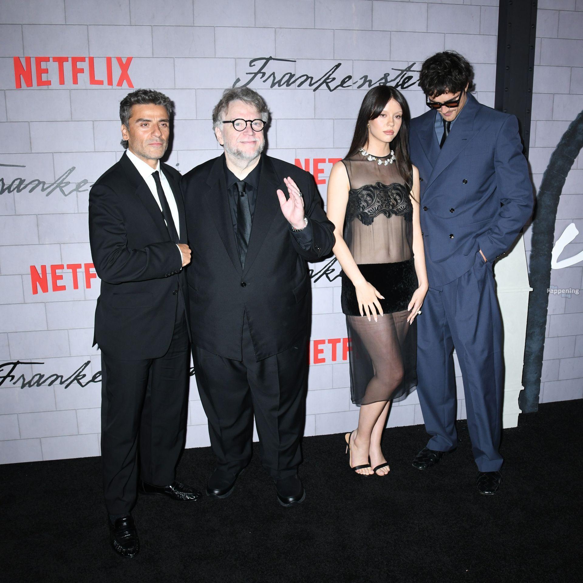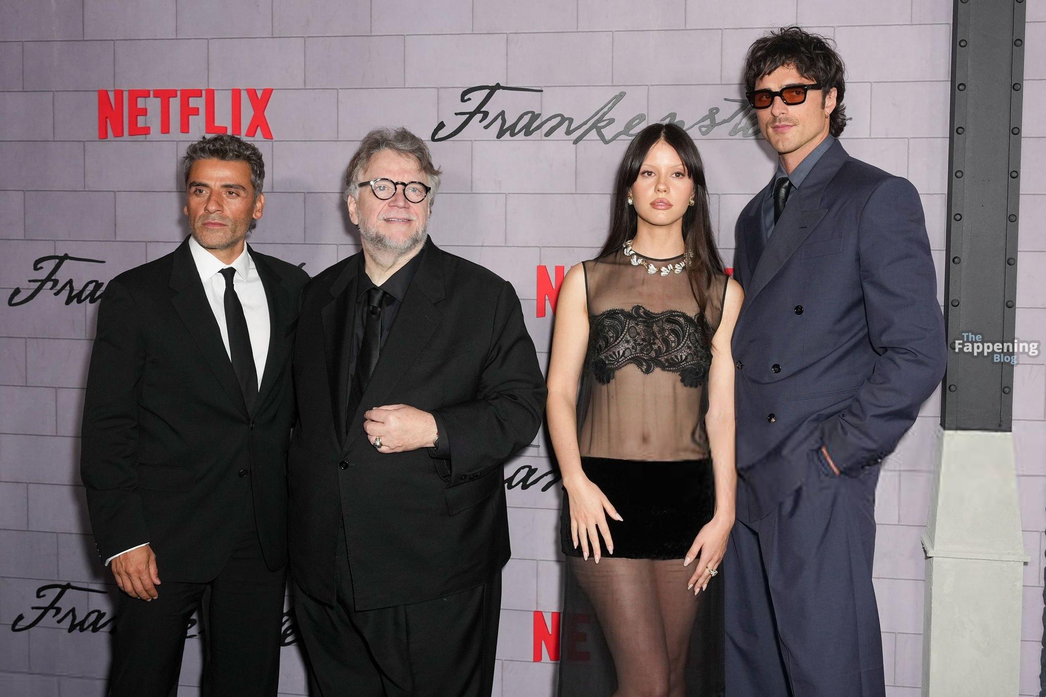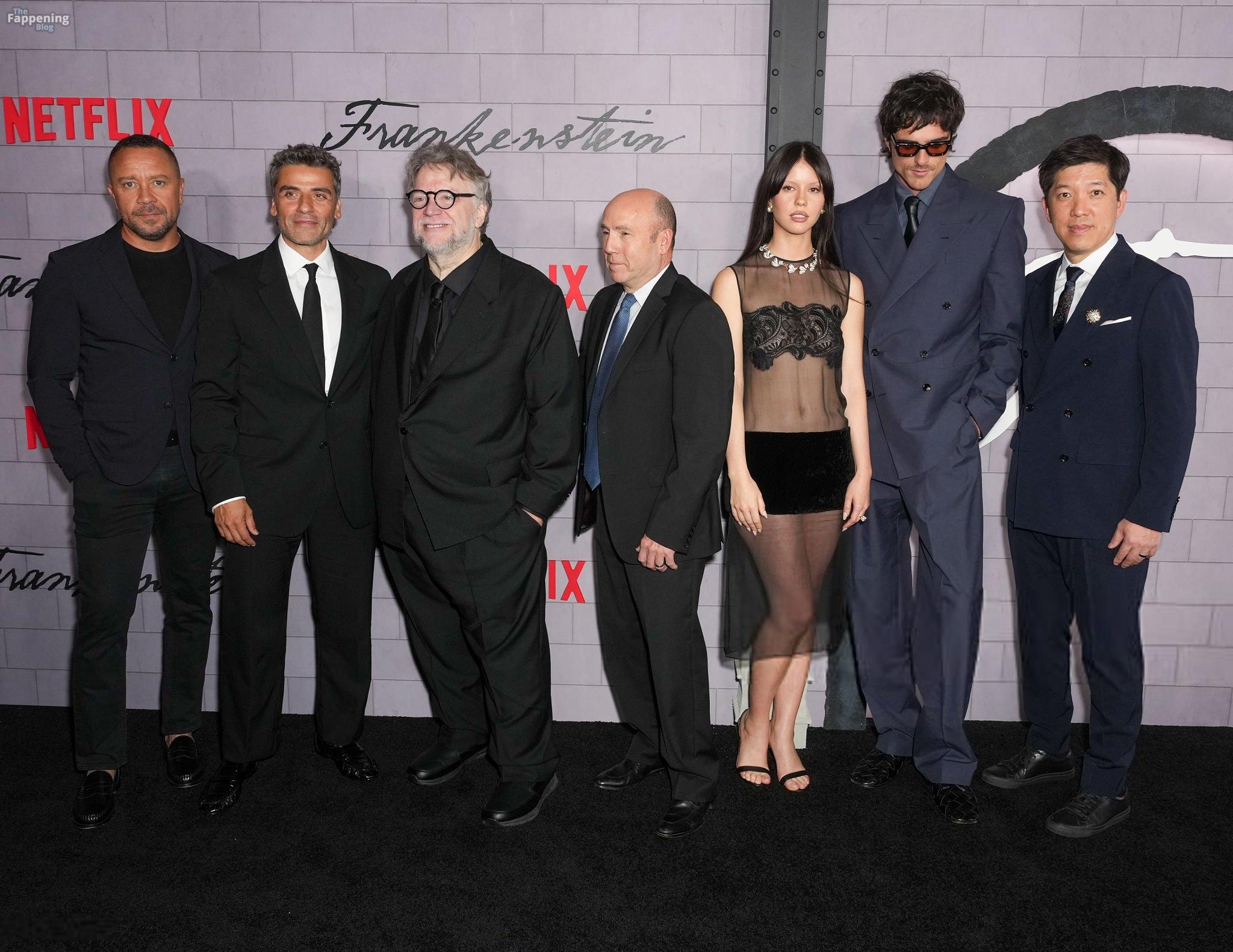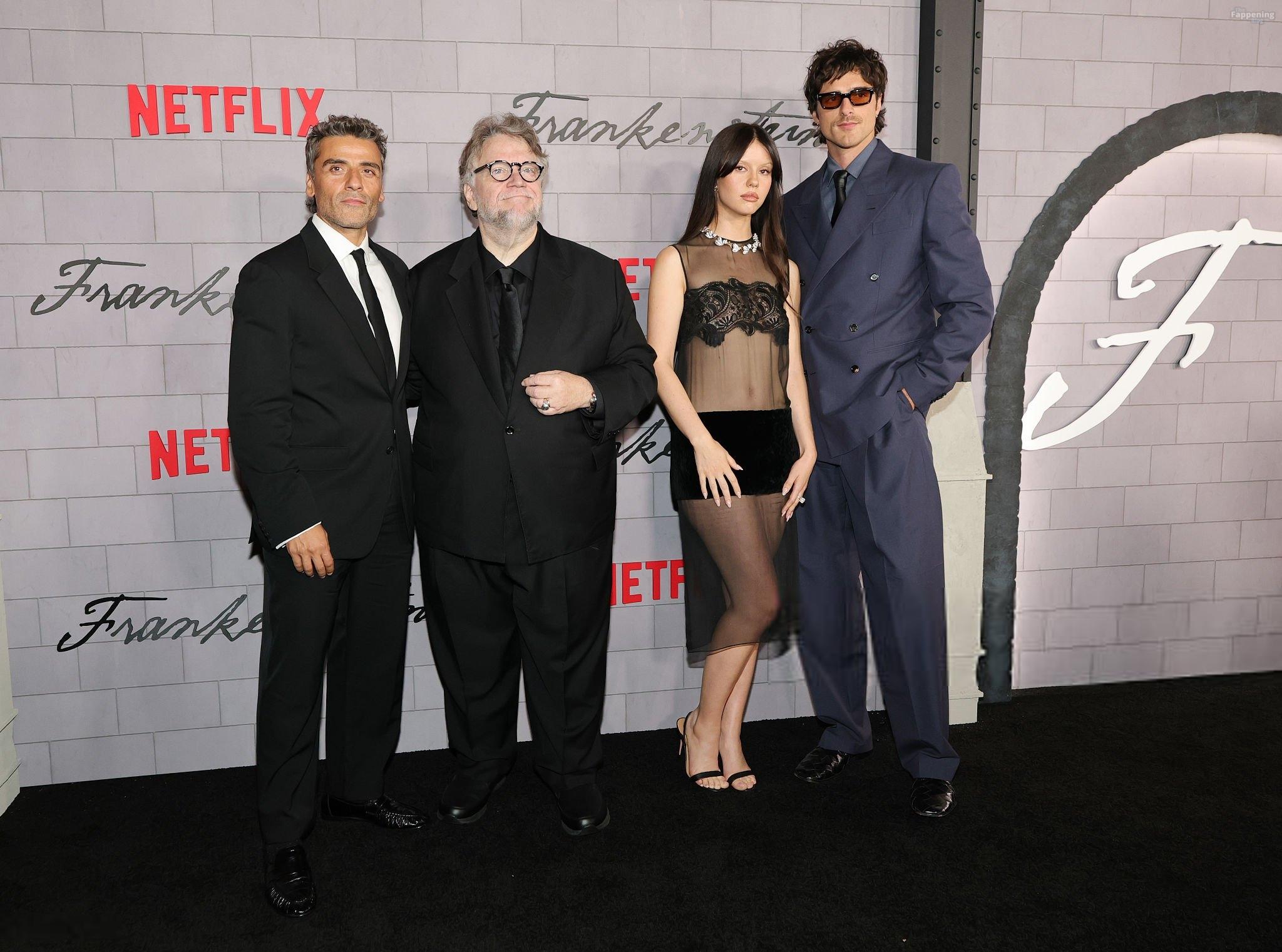 Actress Mia Goth was pictured at the Netflix special screening of “Frankenstein” at The Plaza Hotel in New York, NY, rockin’ a see-through dress by Ferragamo.
