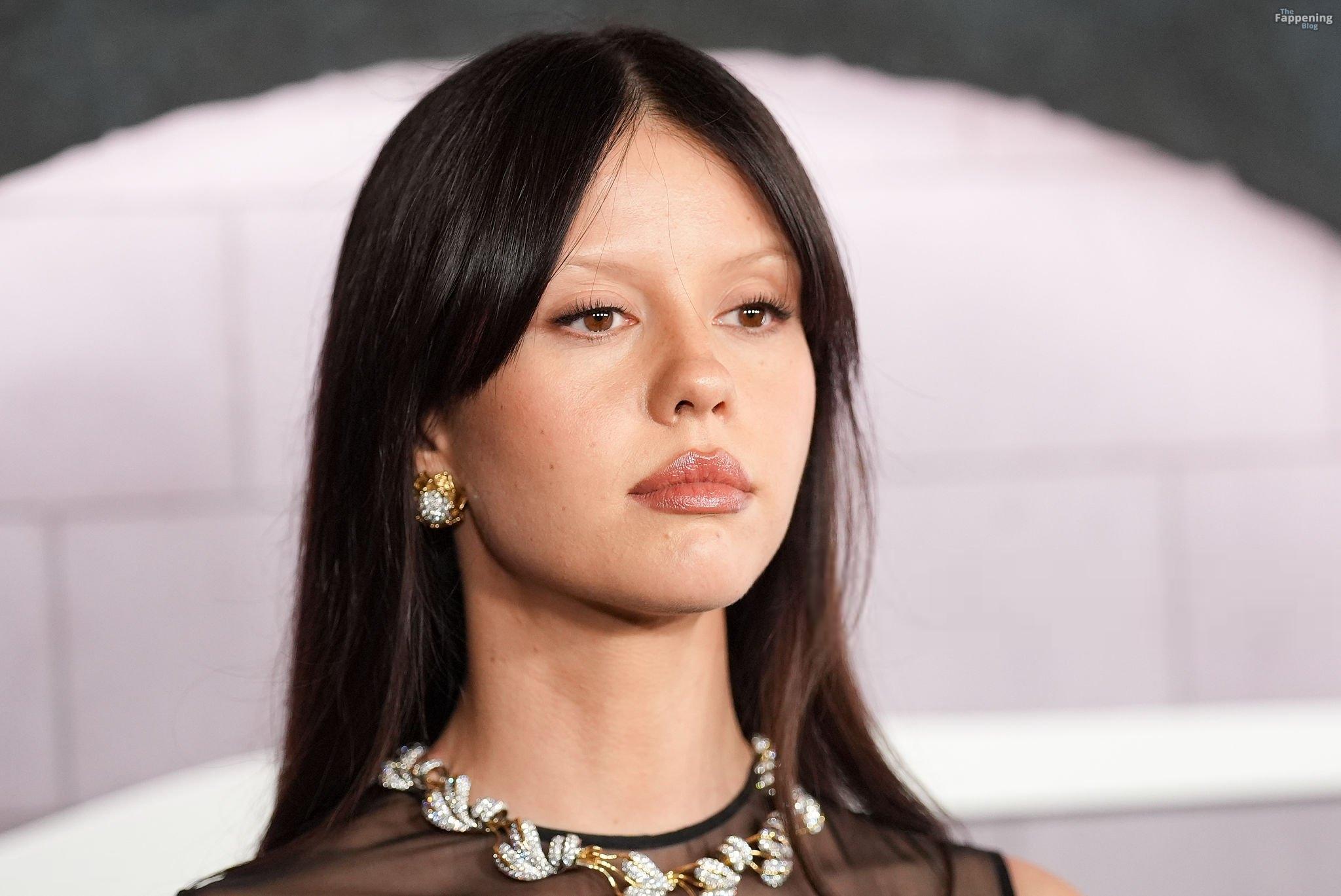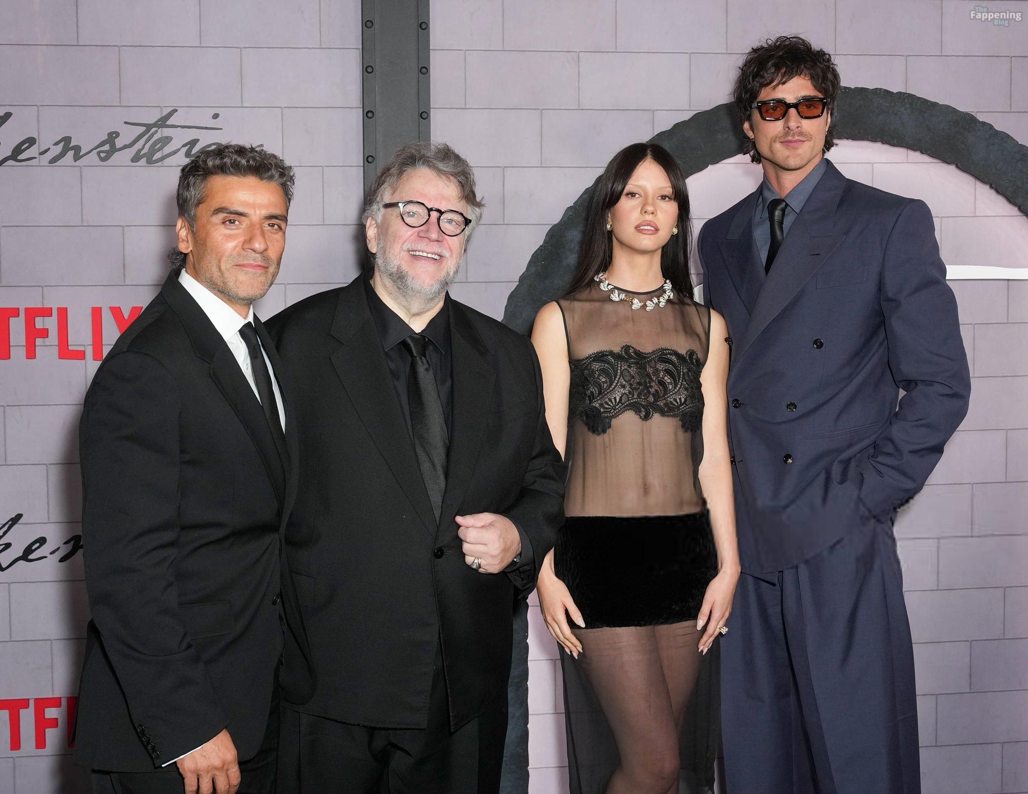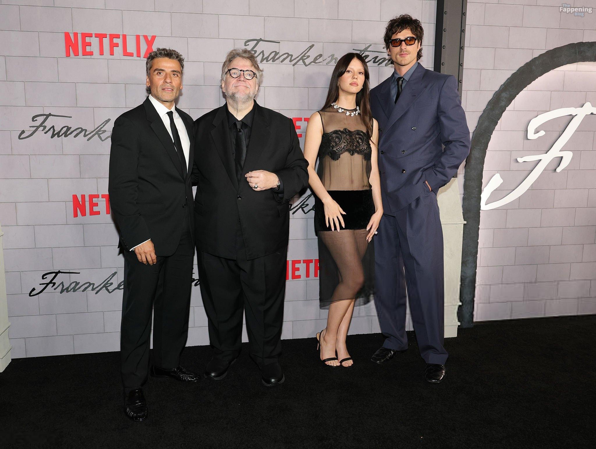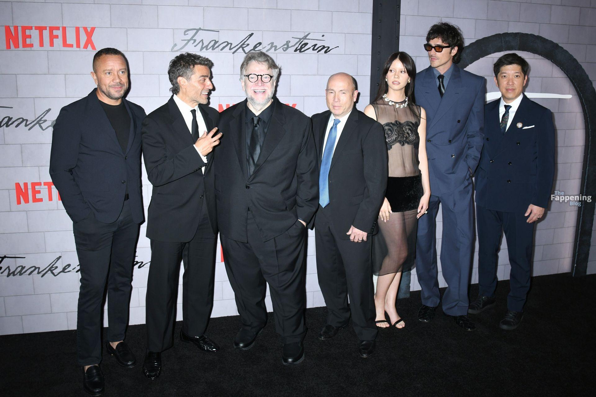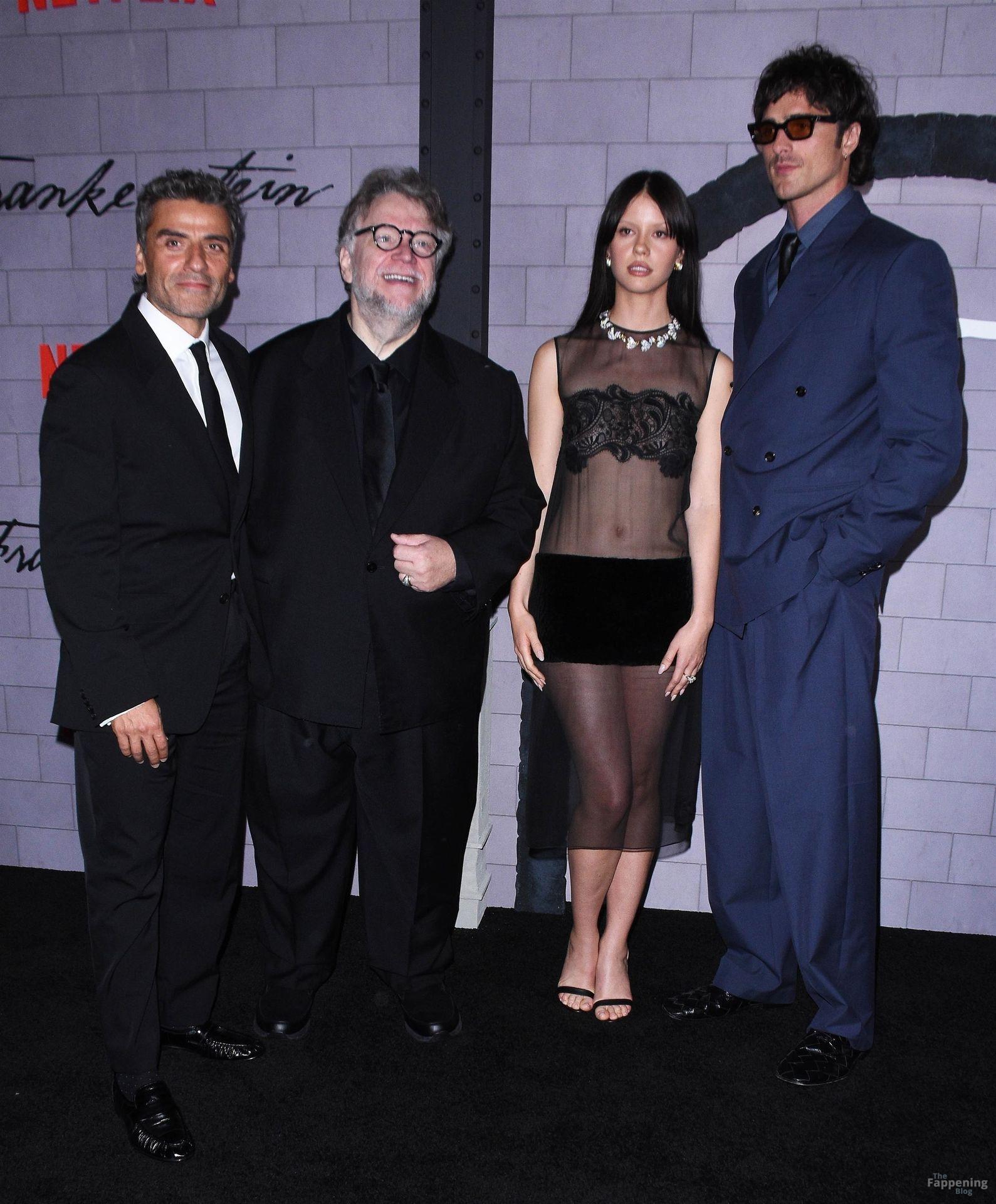 Actress Mia Goth was pictured at the Netflix special screening of “Frankenstein” at The Plaza Hotel in New York, NY, rockin’ a see-through dress by Ferragamo.