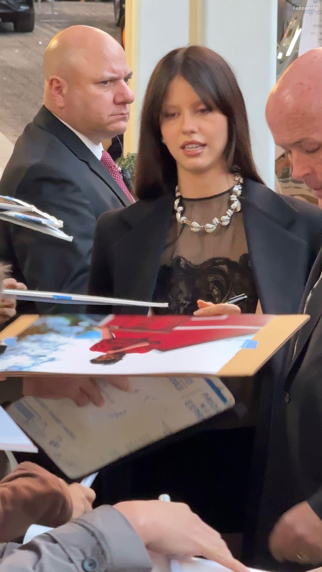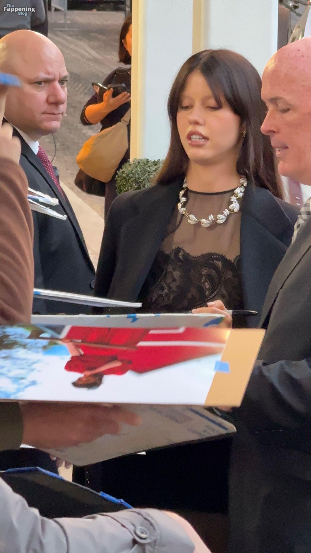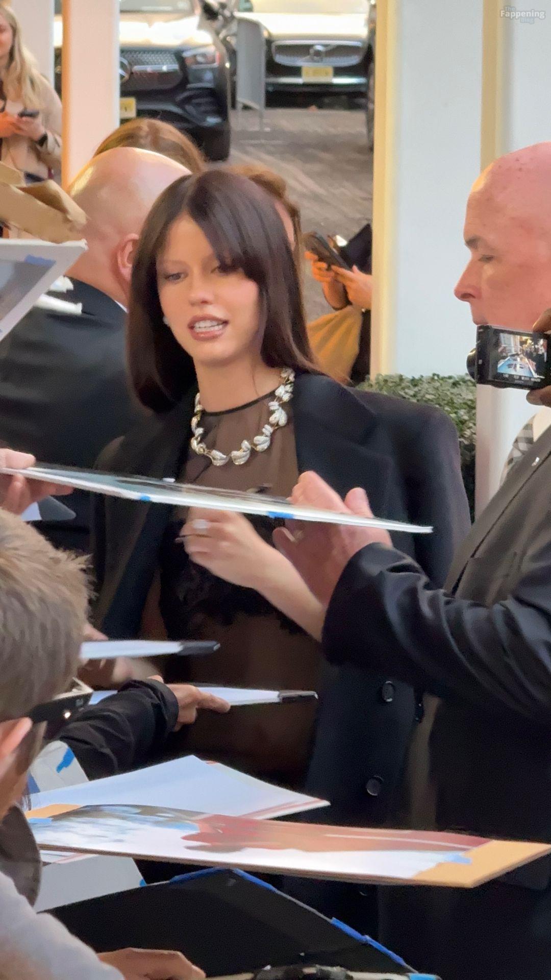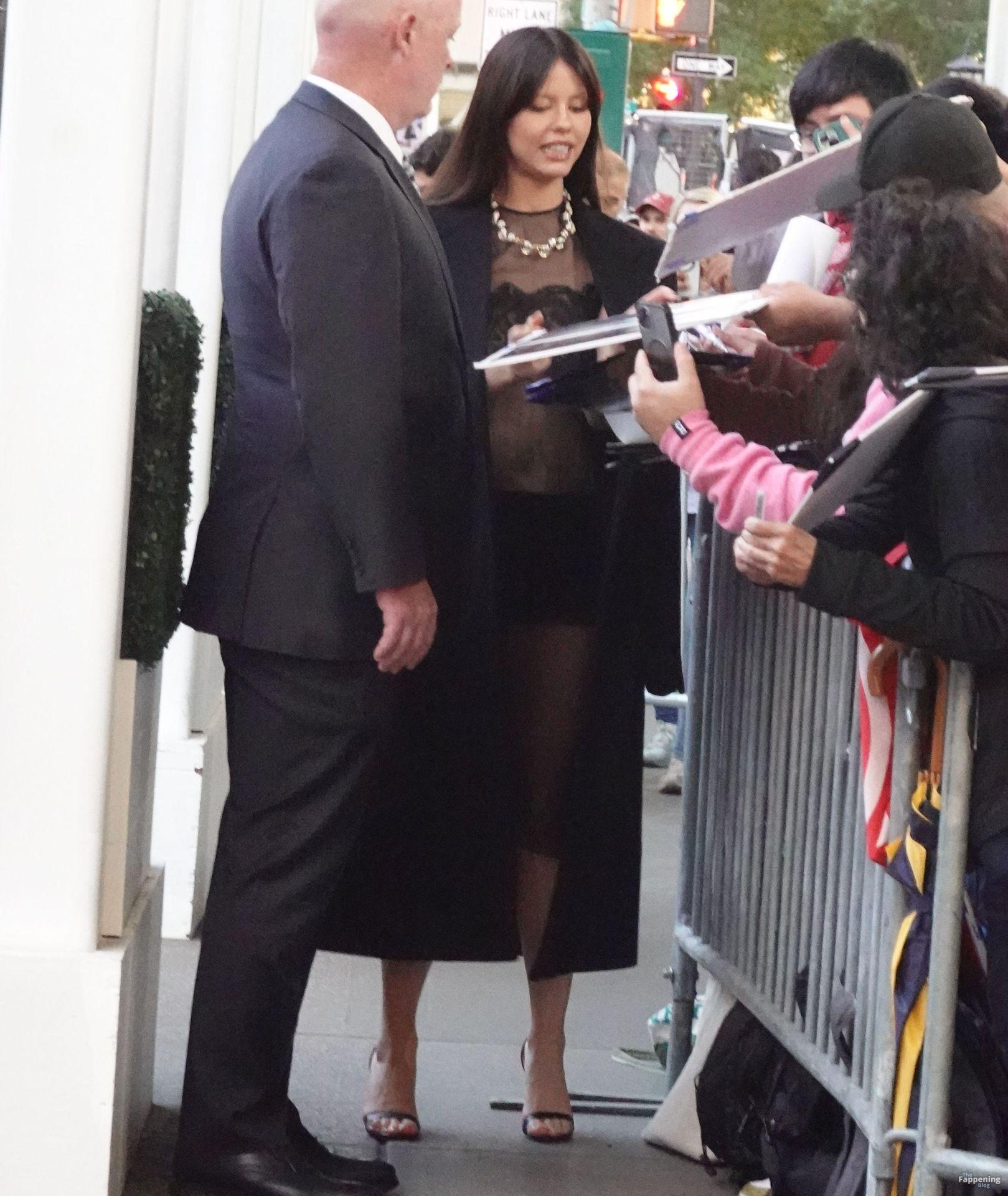 Actress Mia Goth was pictured at the Netflix special screening of “Frankenstein” at The Plaza Hotel in New York, NY, rockin’ a see-through dress by Ferragamo.
