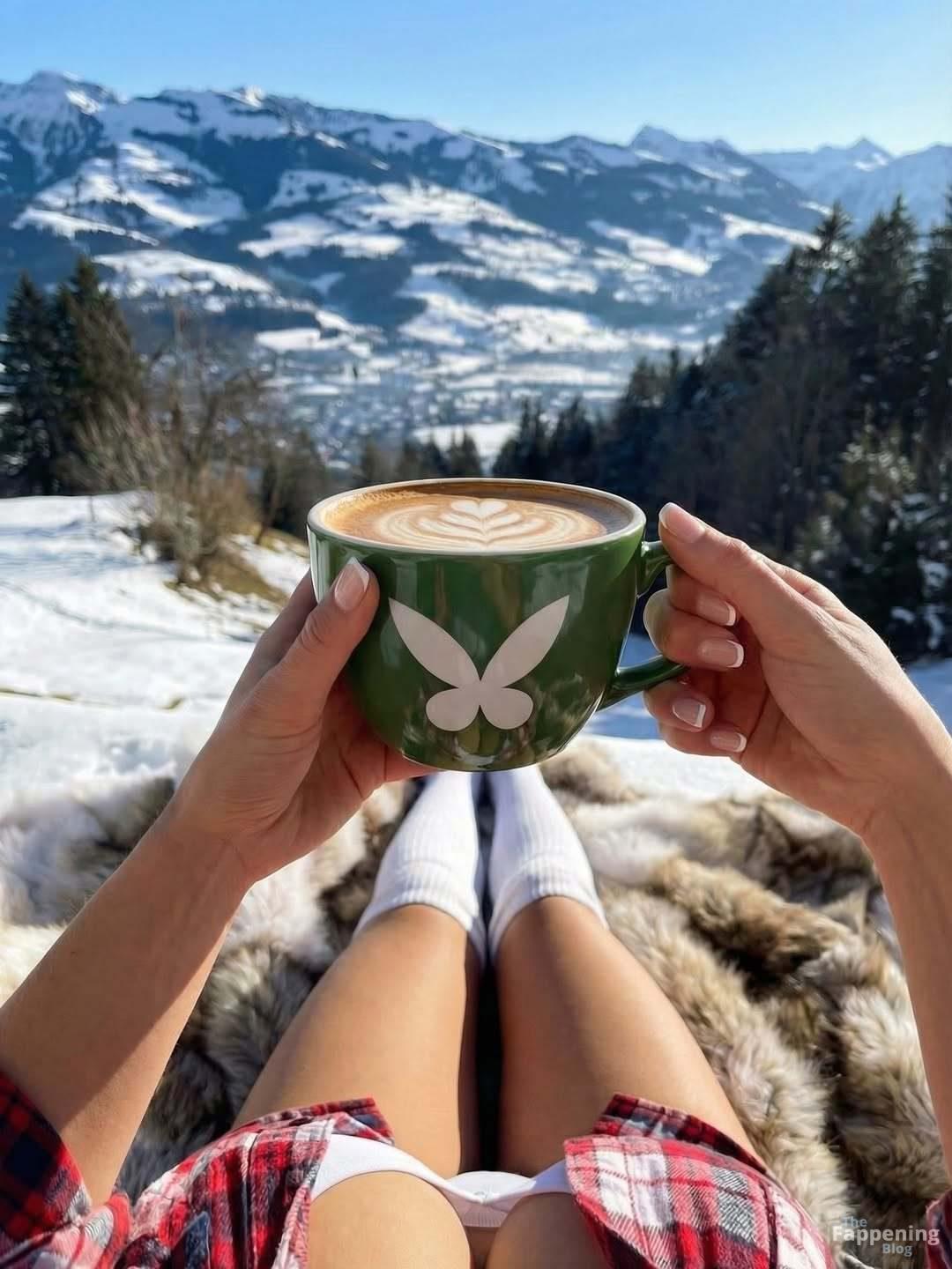 Russian model Nata Lee poses in a white bra and flannel in the snow. Check out her alpine photoshoot.