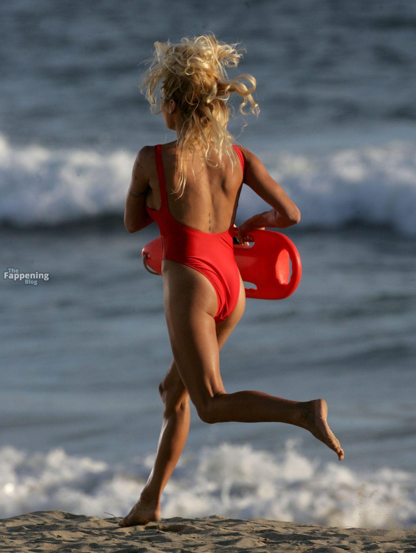 Pamela Anderson in that 2007 lifeguard shoot was hot. Red one-piece, massive boobs, sun-kissed skin, and that iconic slow-motion run.