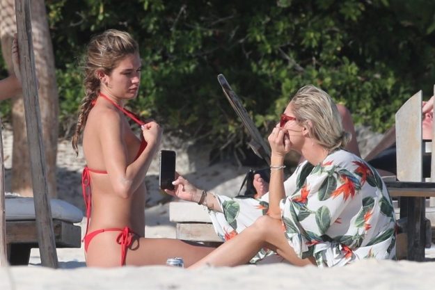 Ryan Seacrest’s girlfriend Shayna Taylor was spotted soaking up some rays with a few mates on the beach front in Tulum, Mexico, 03/04/2018.