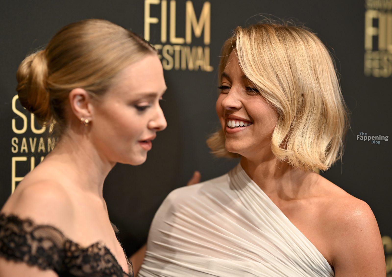 Actress Sydney Sweeney was at the 28th SCAD Savannah Film Festival in Savannah, Georgia. She rocked a tight white mini dress, flashed a bare shoulder, and showed off those beautiful legs.