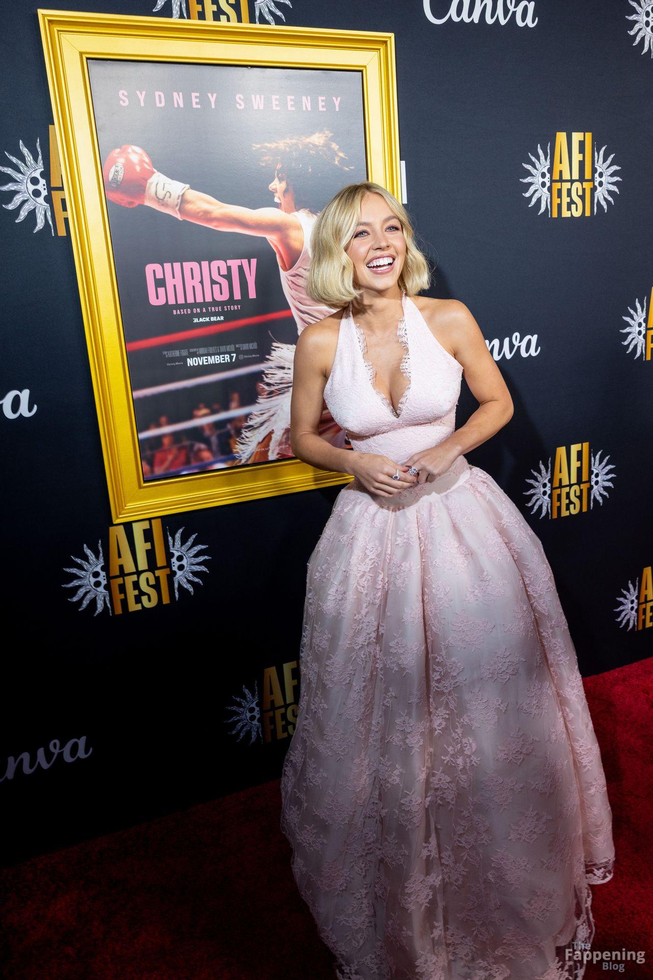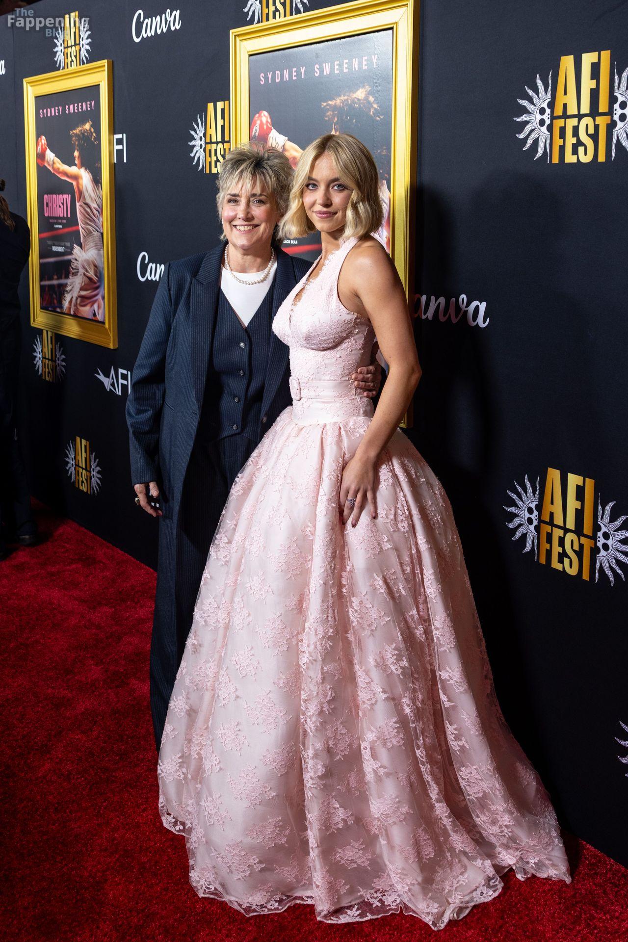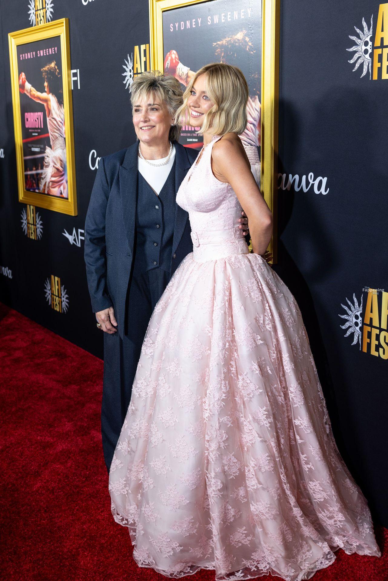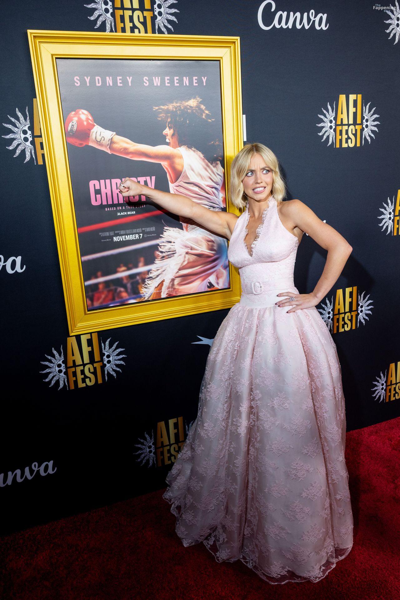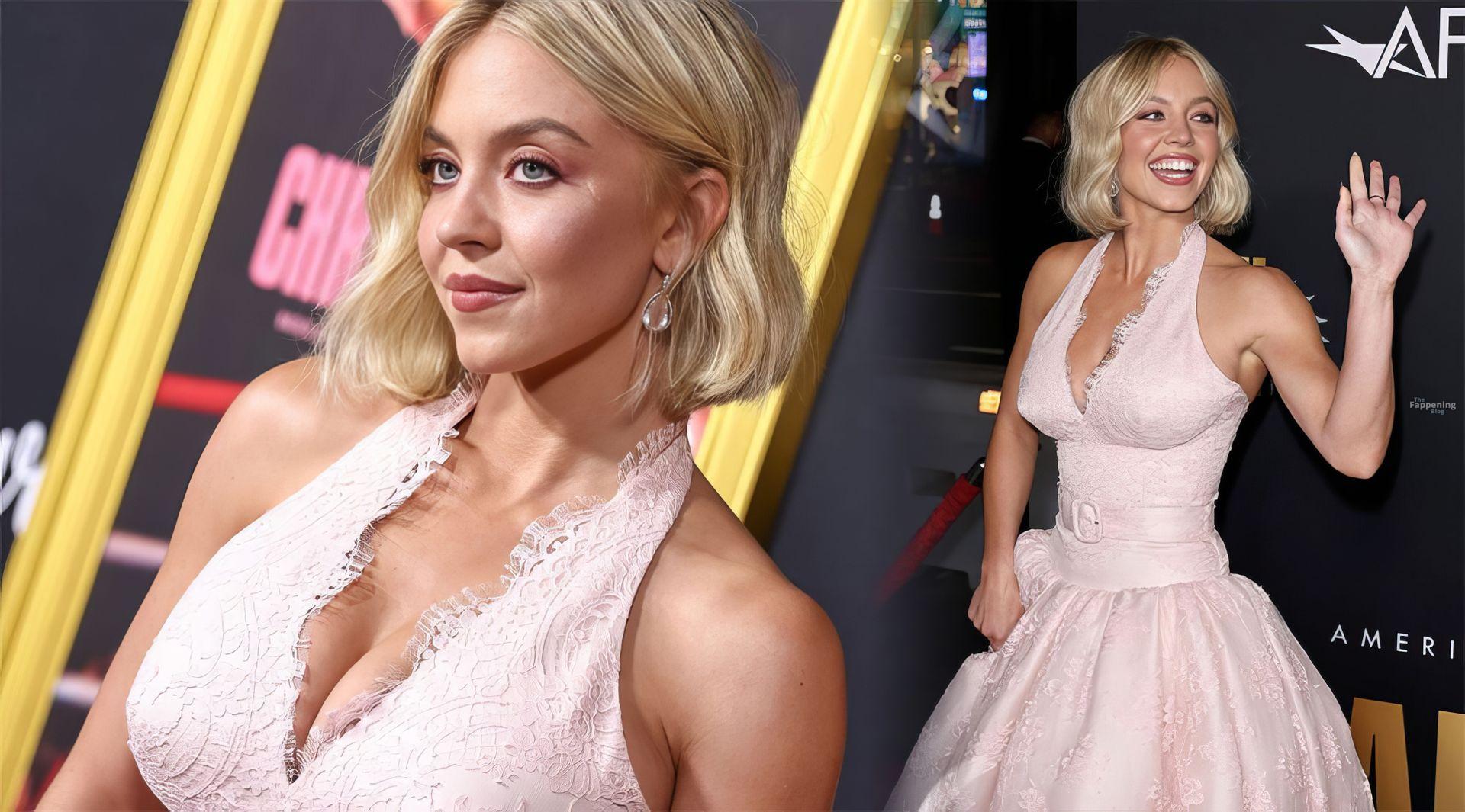 American actress and producer Sydney Sweeney was at the AFI Fest premiere of “Christy” durin’ the AFI FEST. She rocked a pink lace gown that showed off her big tits.