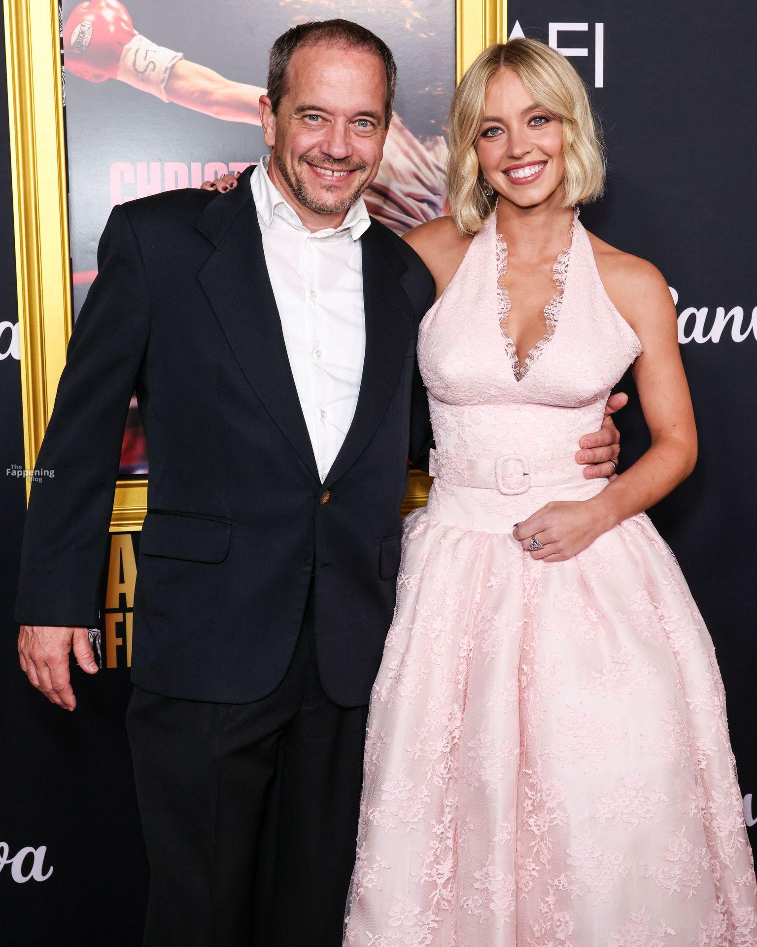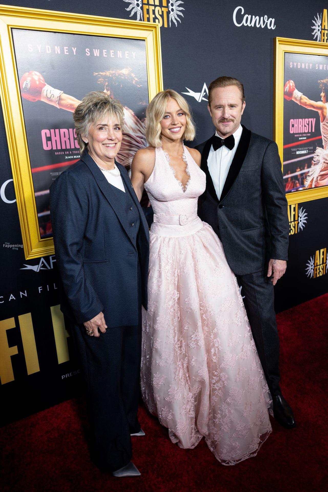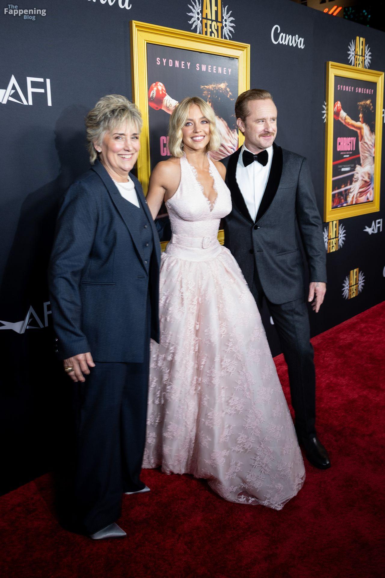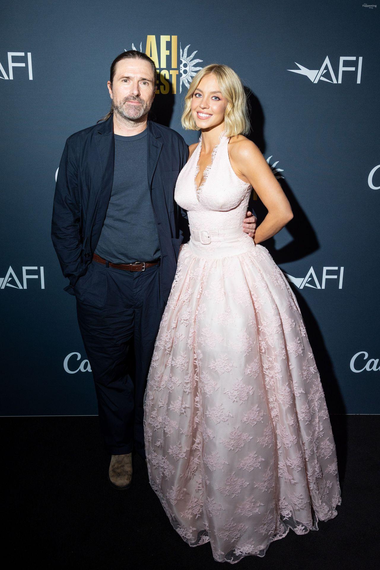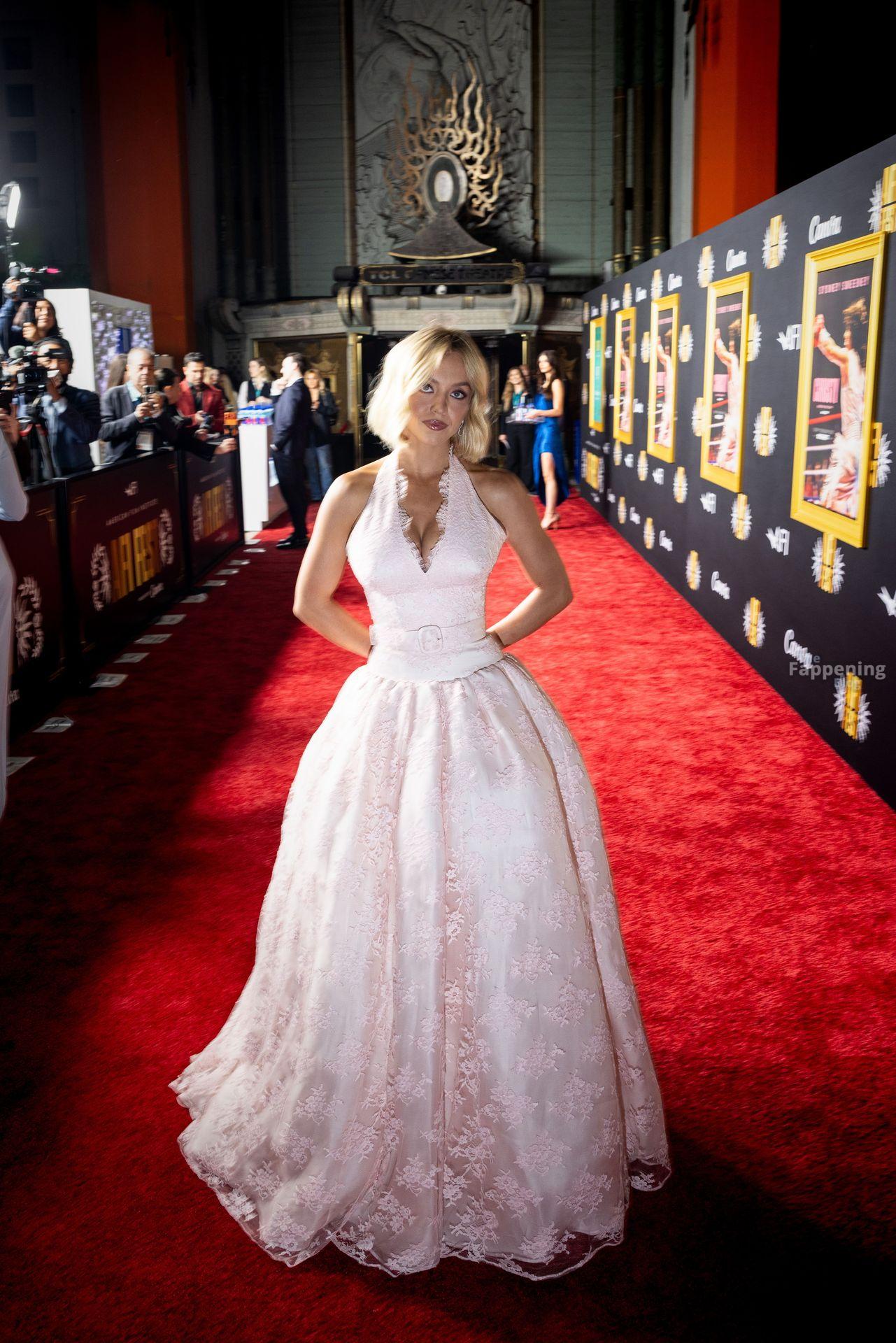 American actress and producer Sydney Sweeney was at the AFI Fest premiere of “Christy” durin’ the AFI FEST. She rocked a pink lace gown that showed off her big tits.
