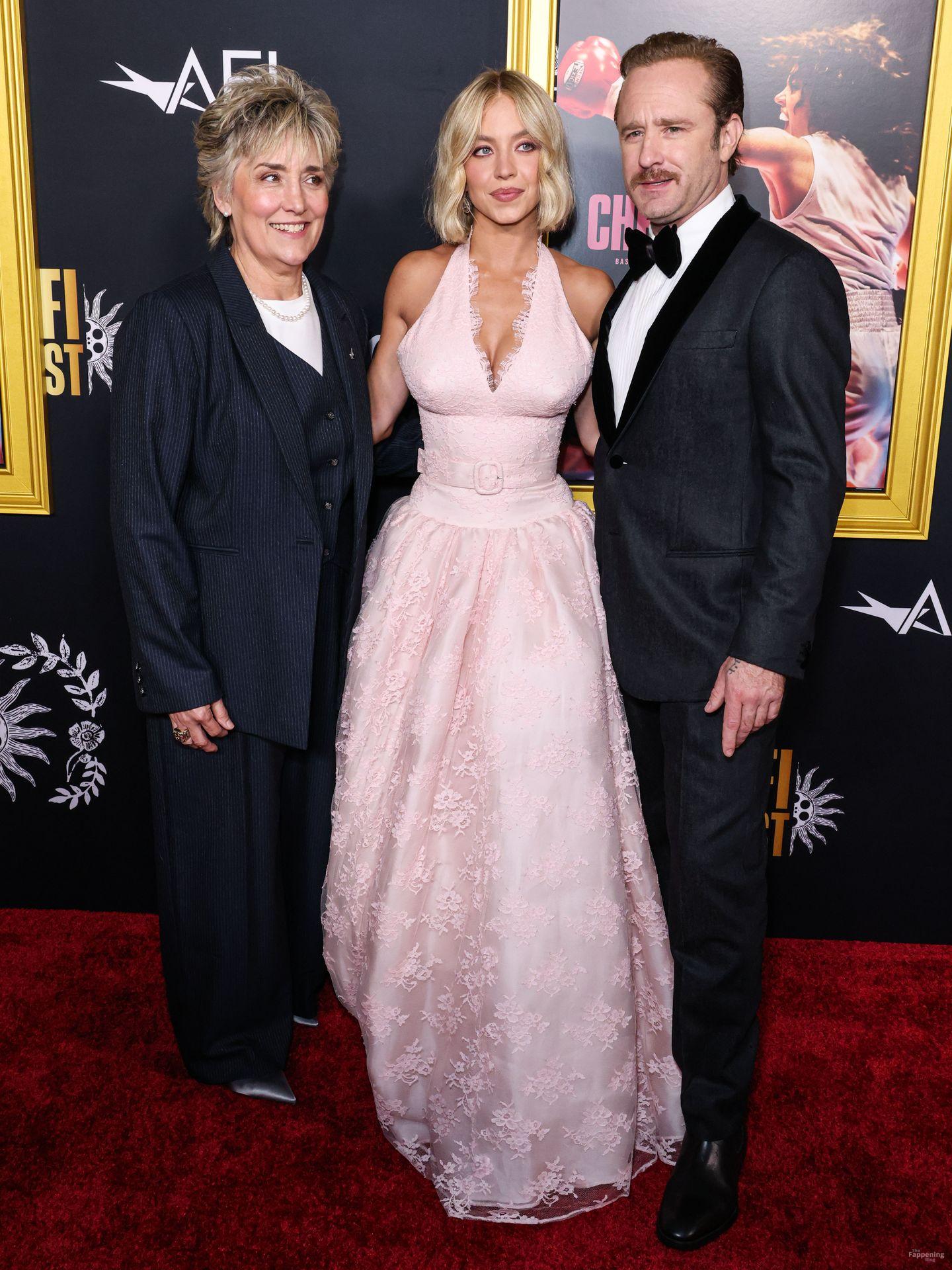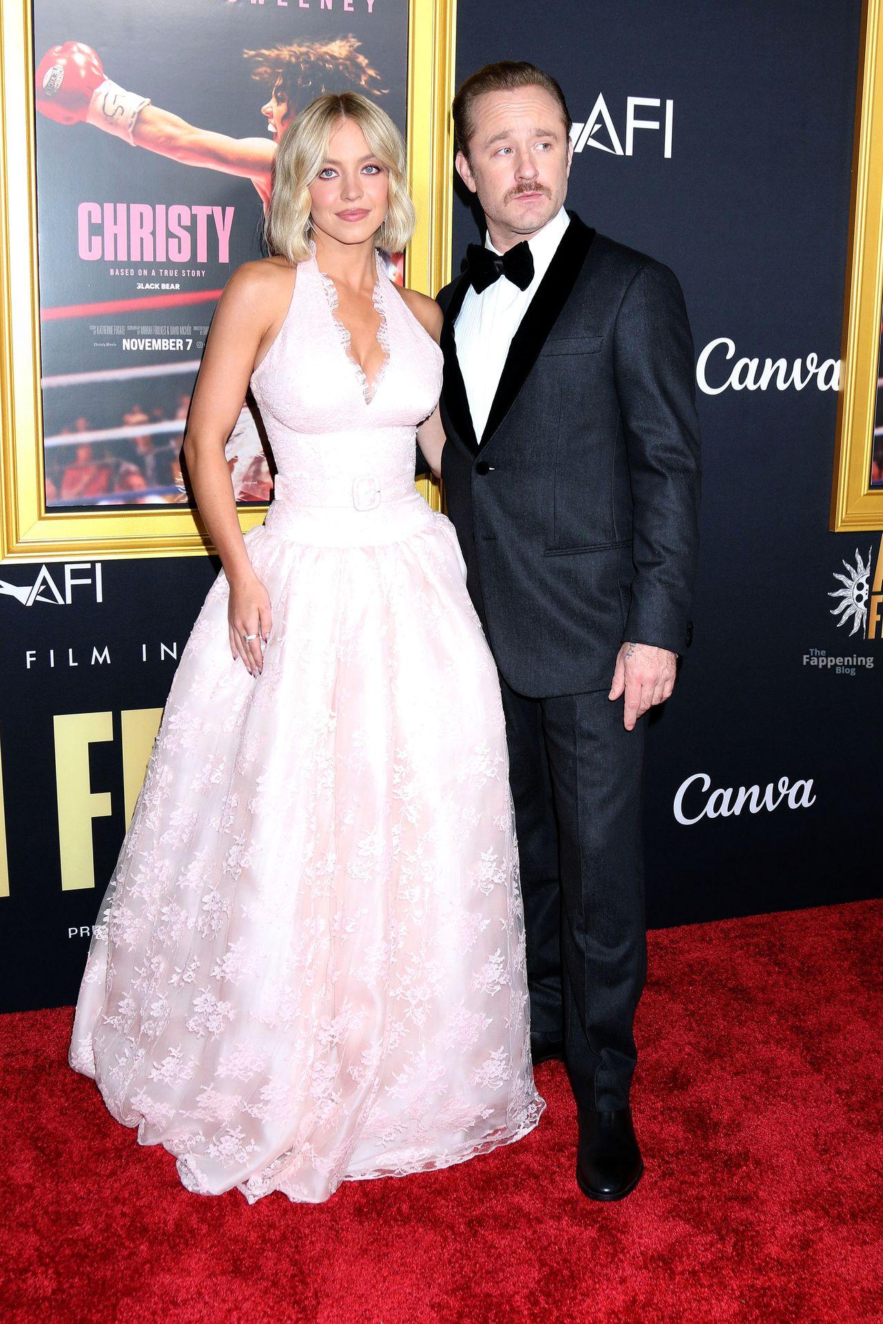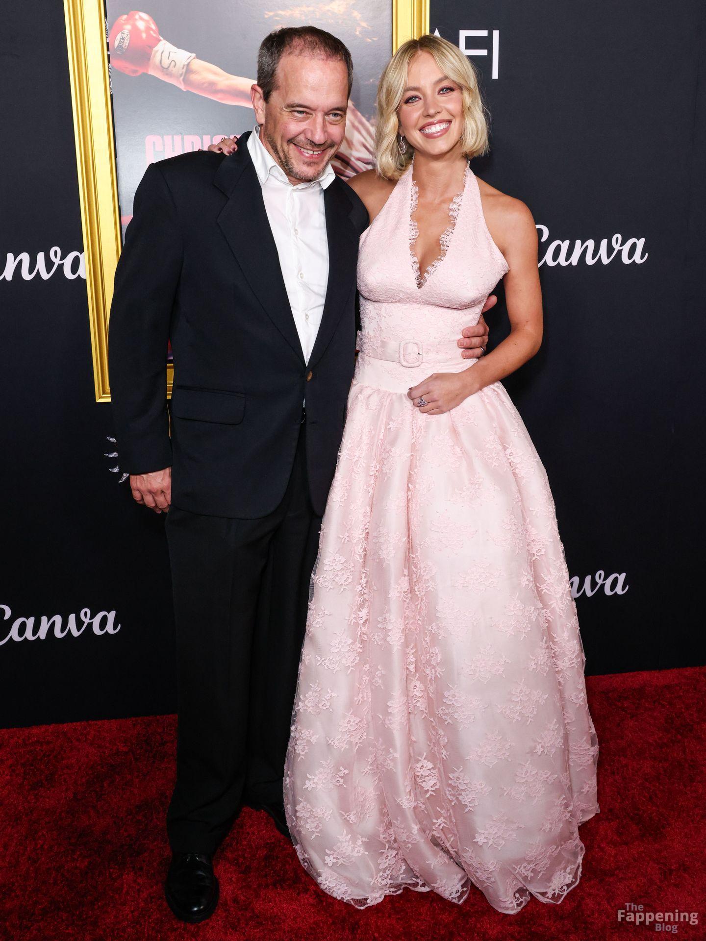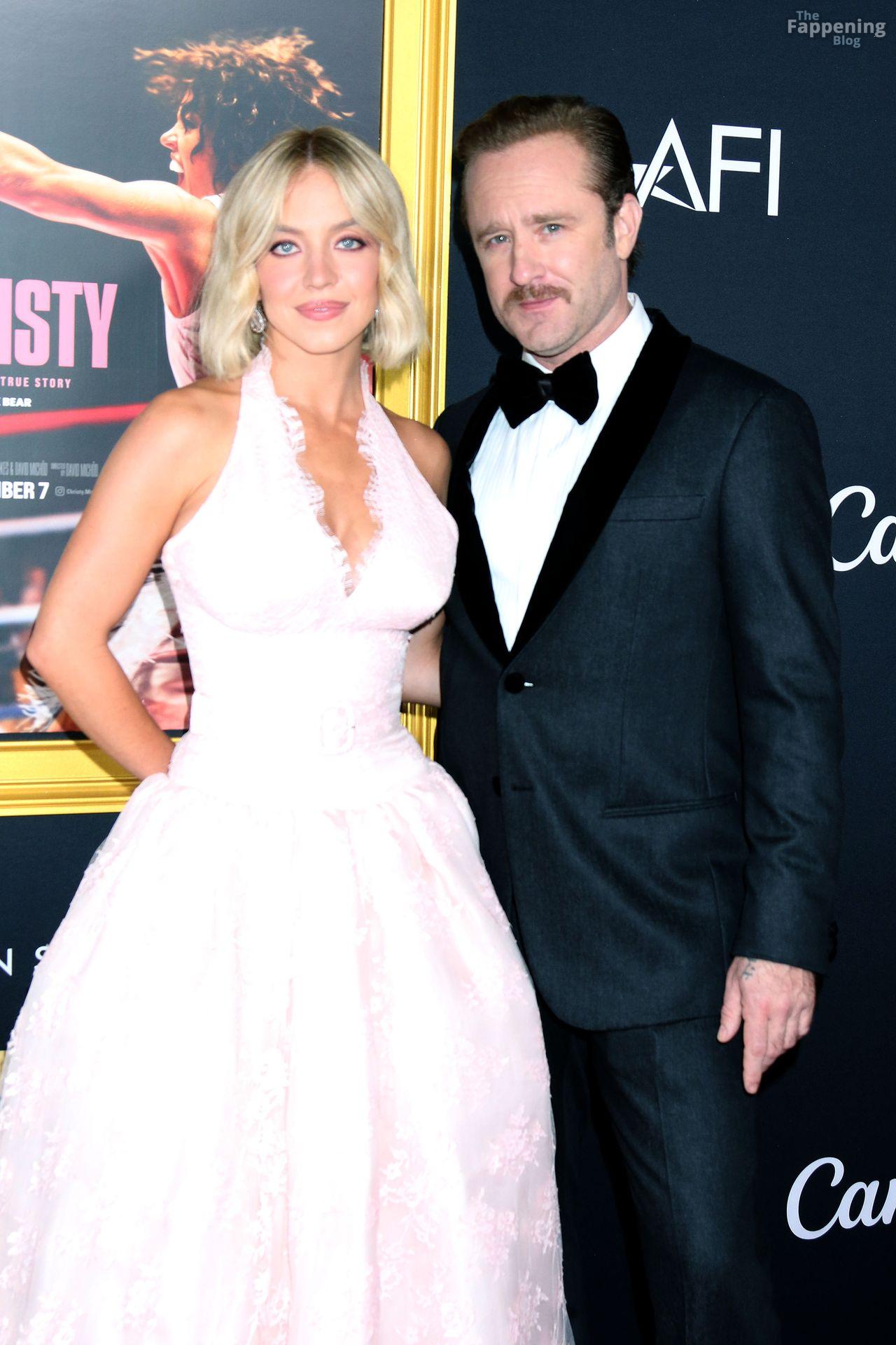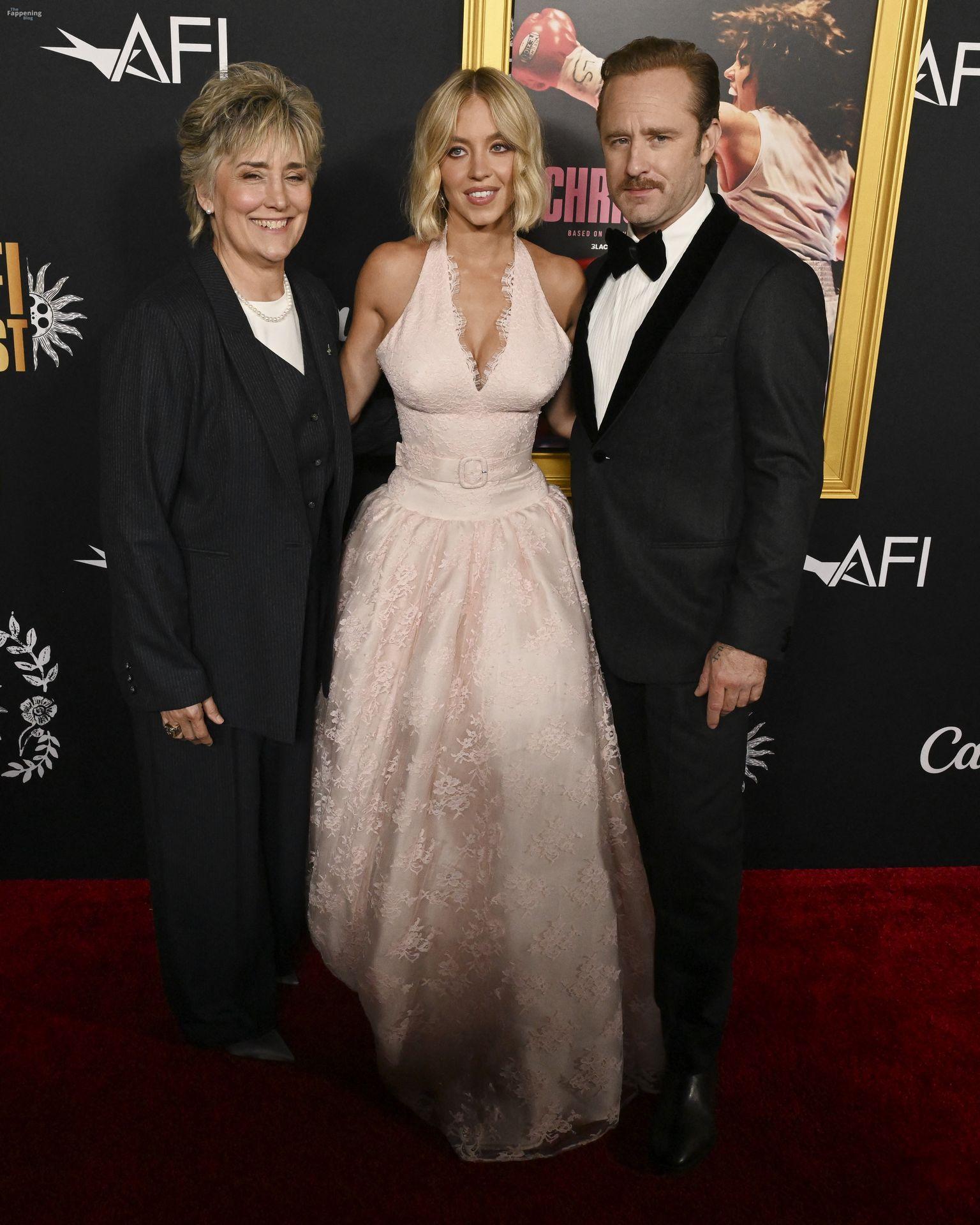 American actress and producer Sydney Sweeney was at the AFI Fest premiere of “Christy” durin’ the AFI FEST. She rocked a pink lace gown that showed off her big tits.