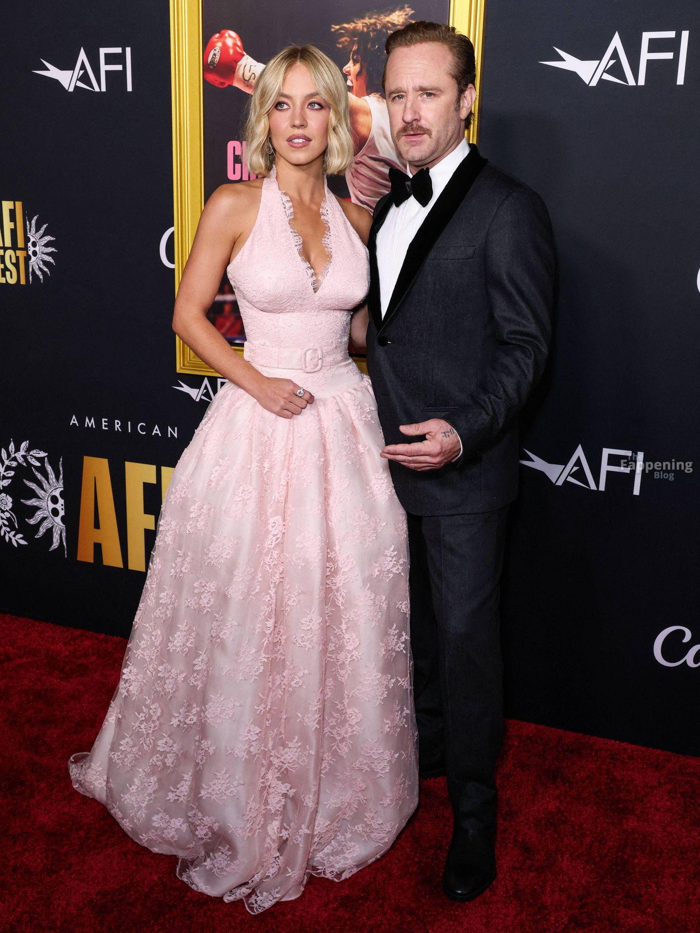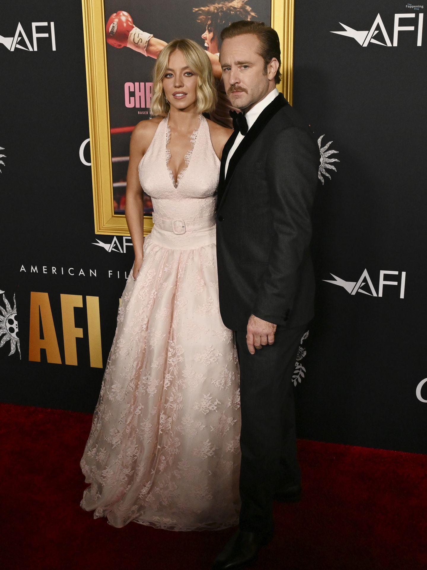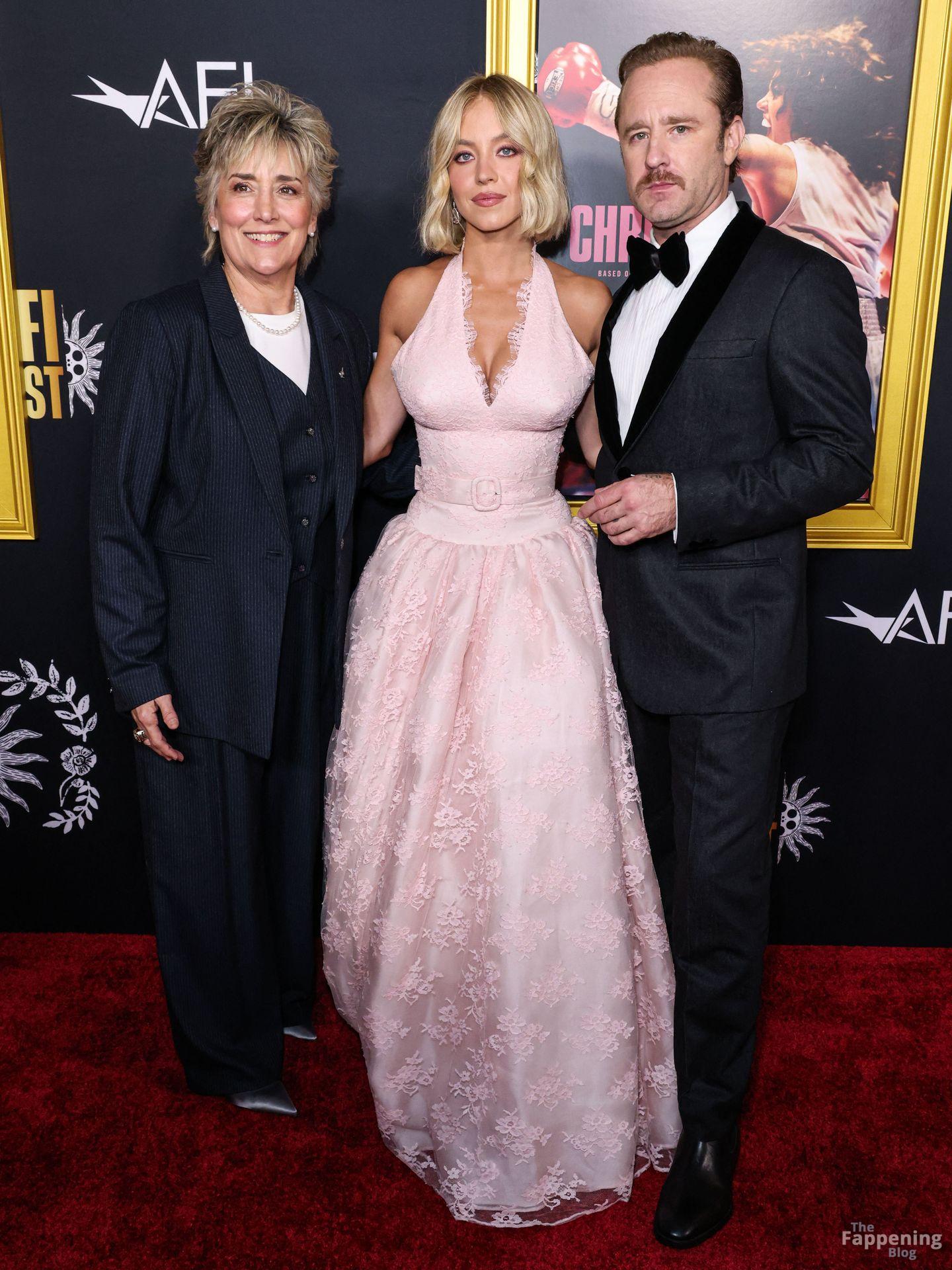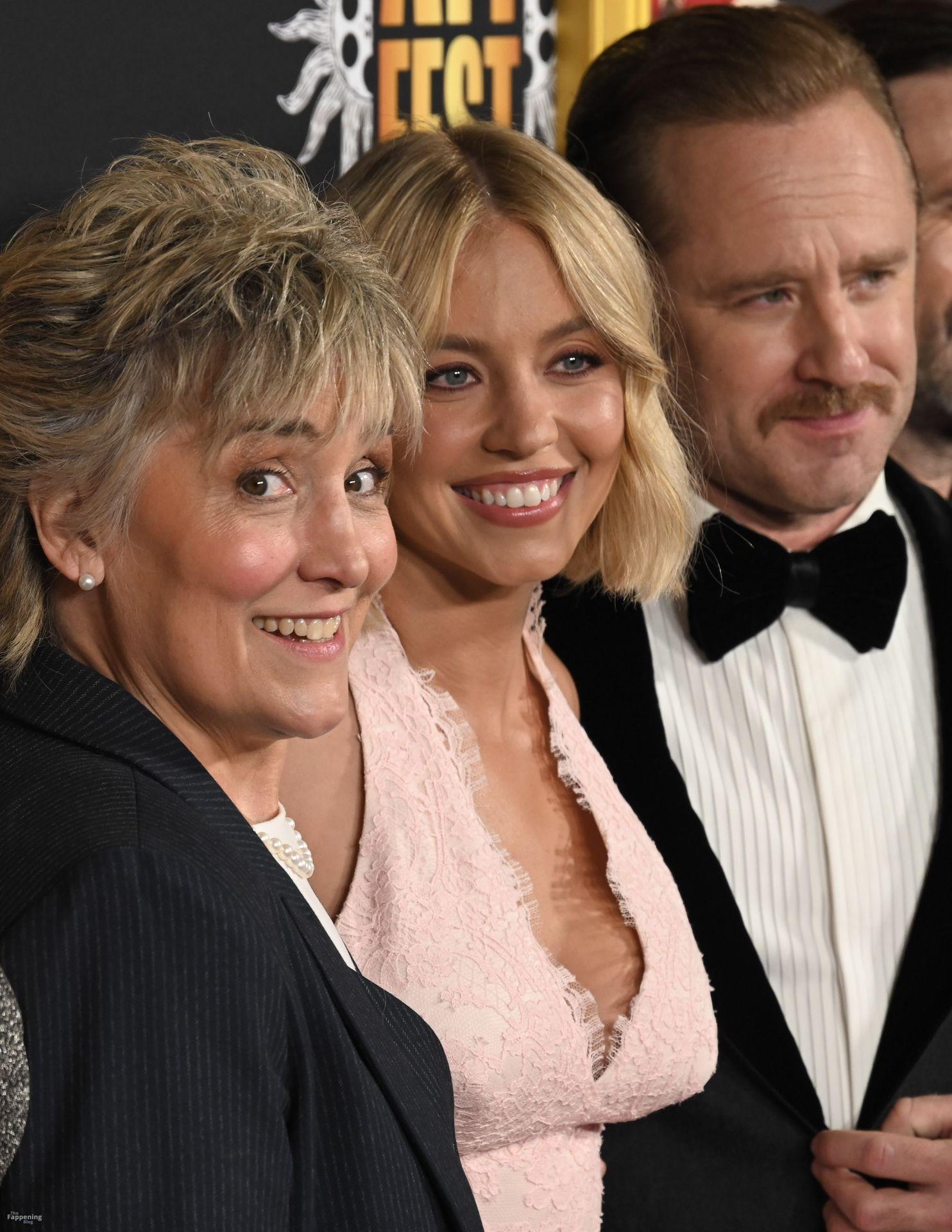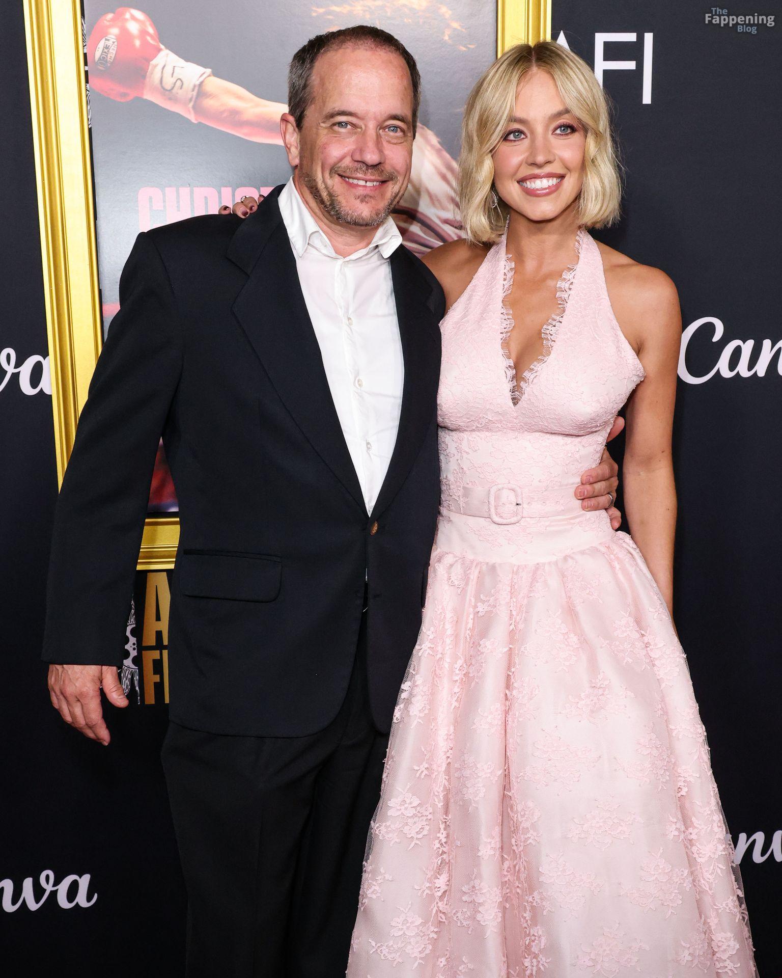 American actress and producer Sydney Sweeney was at the AFI Fest premiere of “Christy” durin’ the AFI FEST. She rocked a pink lace gown that showed off her big tits.