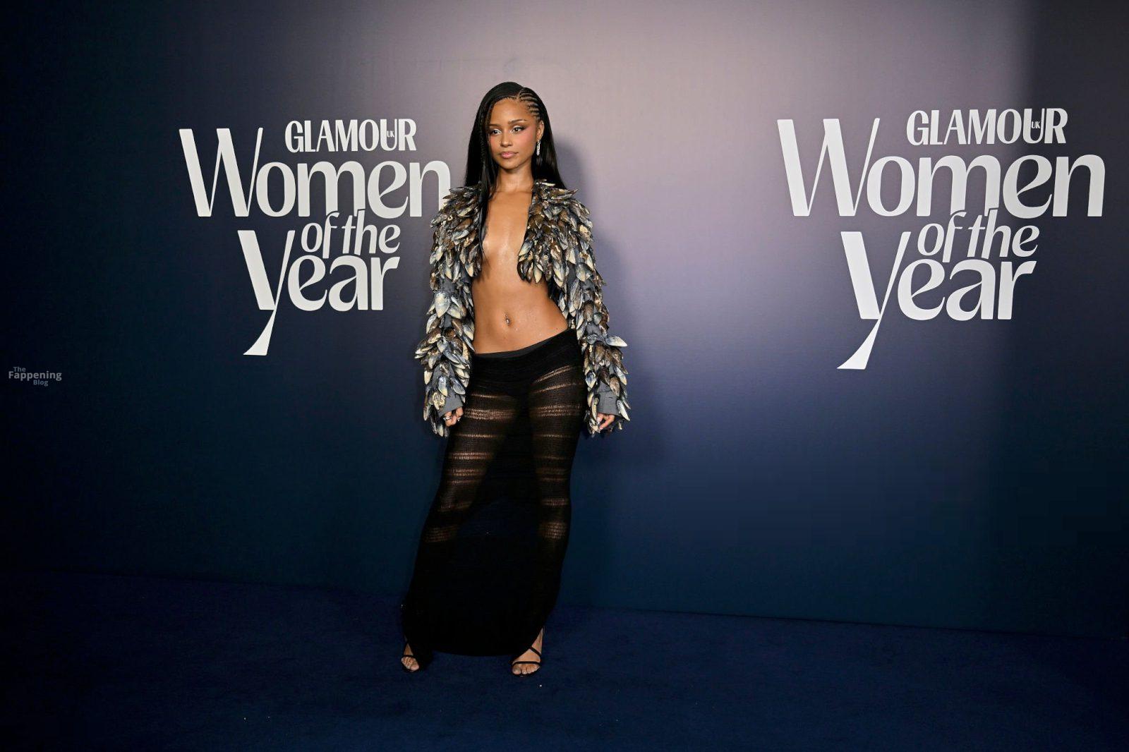 Tyla was at the Glamour Women of the Year Awards in London, rocking a sheer skirt, bold jacket, and barely-there top.